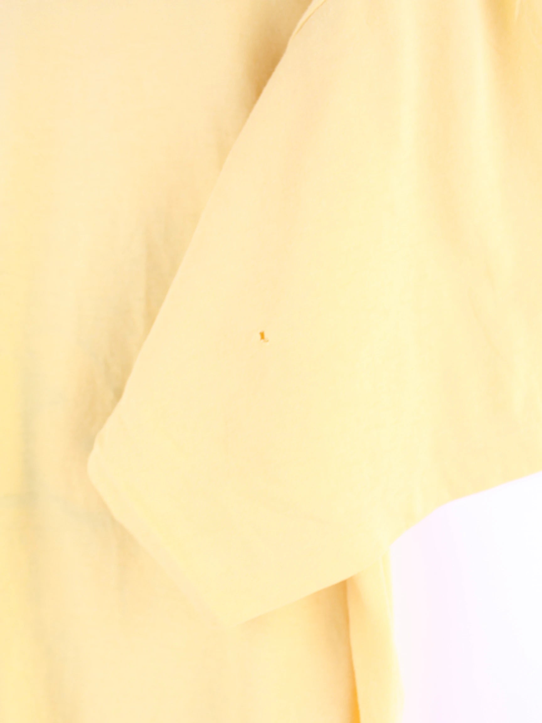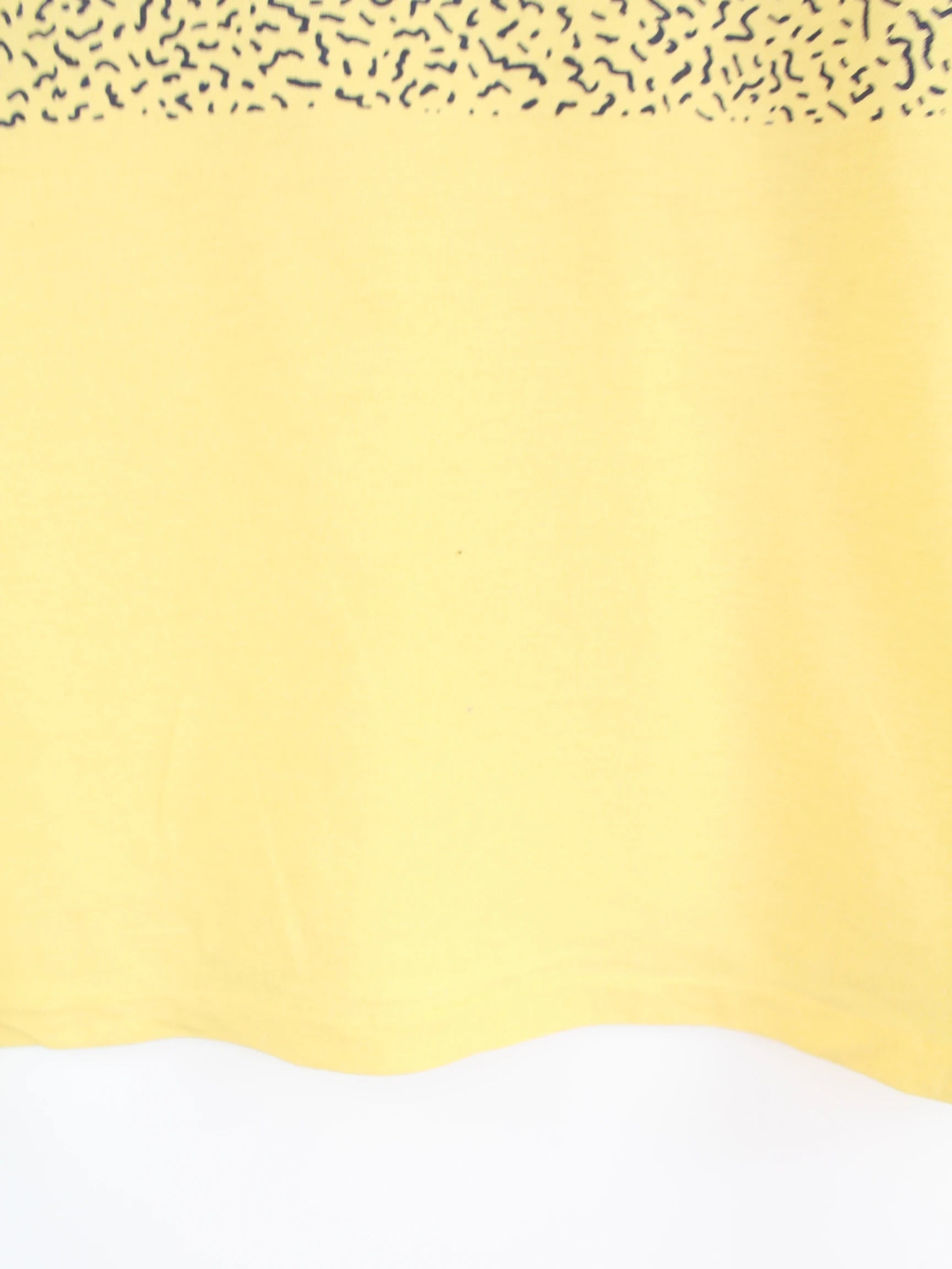 Vintage T-Shirt in Größe XL aus den 90'ern. Es ist aus Baumwolle hergestellt und in Gelb lieferbar. Mit schönem Skiny Print.