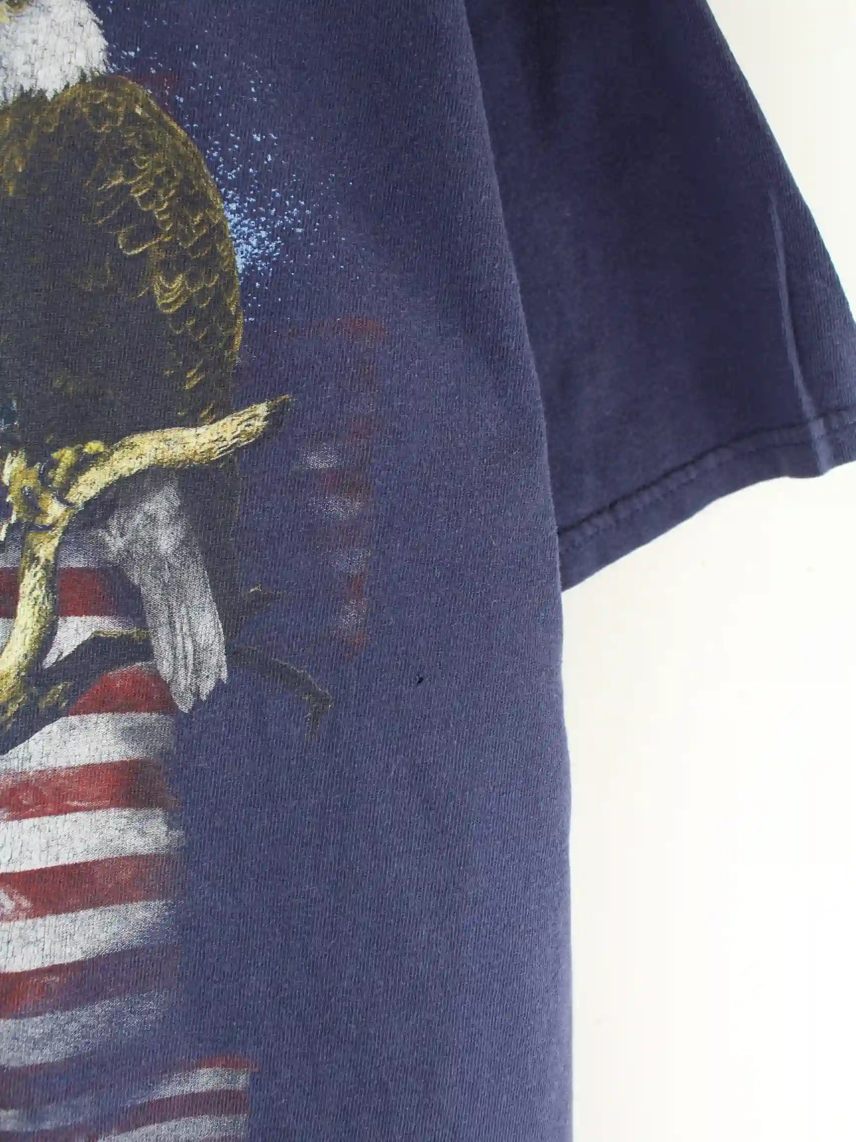 Vintage Damen America Eagle Print T-Shirt Blau XL
