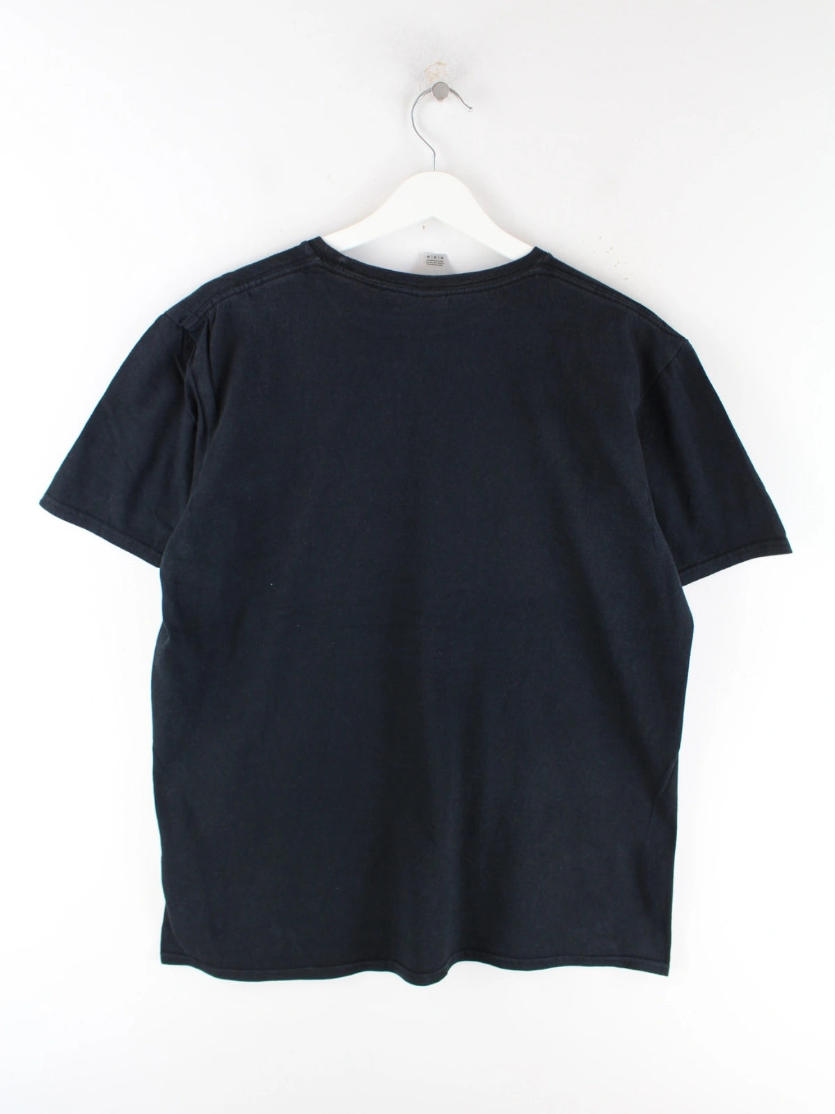 Schwarzes Vintage T-Shirt in Größe M. Es ist aus Baumwolle produziert und in sehr gutem Zustand bei uns vorrätig. Mit schönem Odin Print.