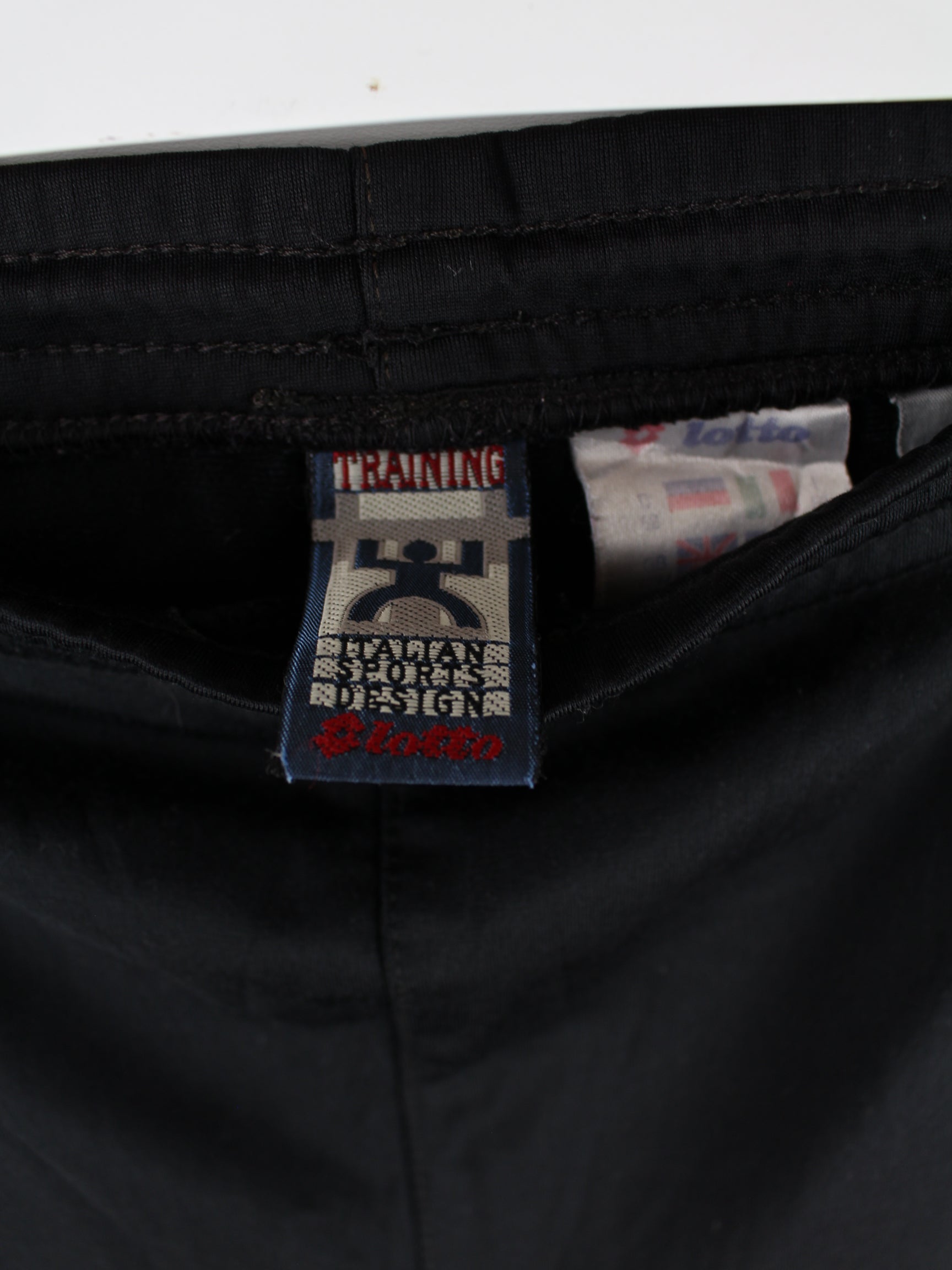 Track Pants des Labels Lotto in Größe L aus den 90'ern. Sie sind aus Synthetik gefertigt und in Schwarz bei uns vorrätig.