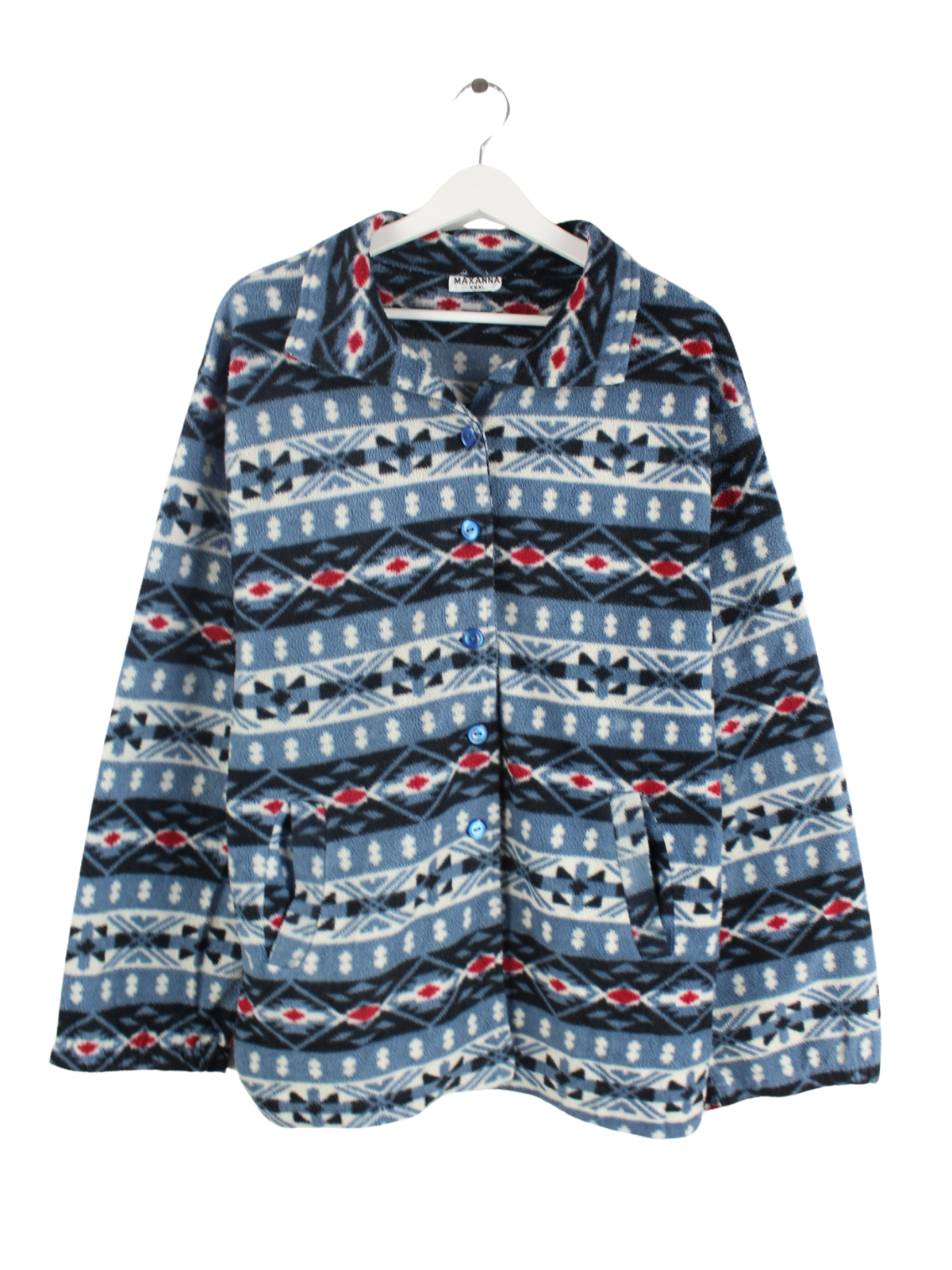 Vintage 90s Crazy Pattern Fleece Jacke Blau 3XL