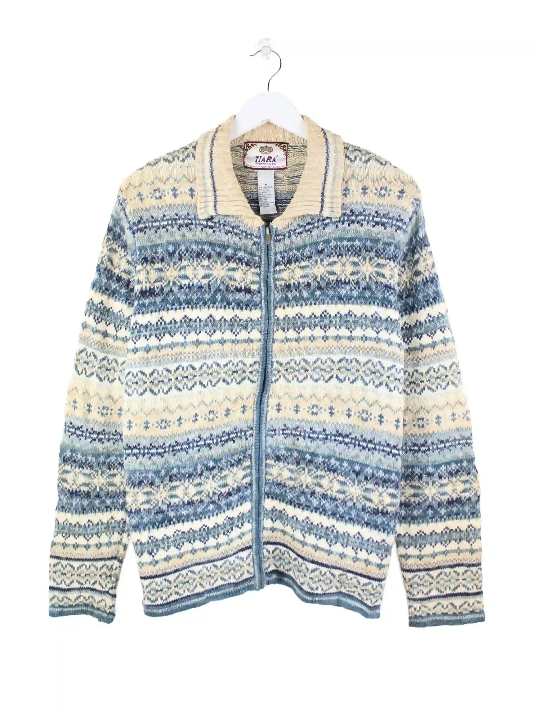 Beigefarbene Vintage Strickjacke aus den 90'ern in Größe M. Sie ist aus einer Baumwollmischung gefertigt und in sehr gutem Zustand in Stock.