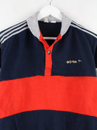 Sweater vom Label Adidas in Größe XS aus den 70'ern. Er ist aus einer Baumwollmischung und in Blau zu bekommen. Mit chiquem Vintage Print.