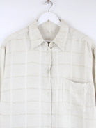Vintage Freizeit Hemd in Größe XL. Es ist aus einer Synthetikmischung gemacht und in Beige vorrätig.