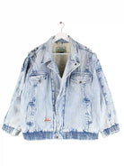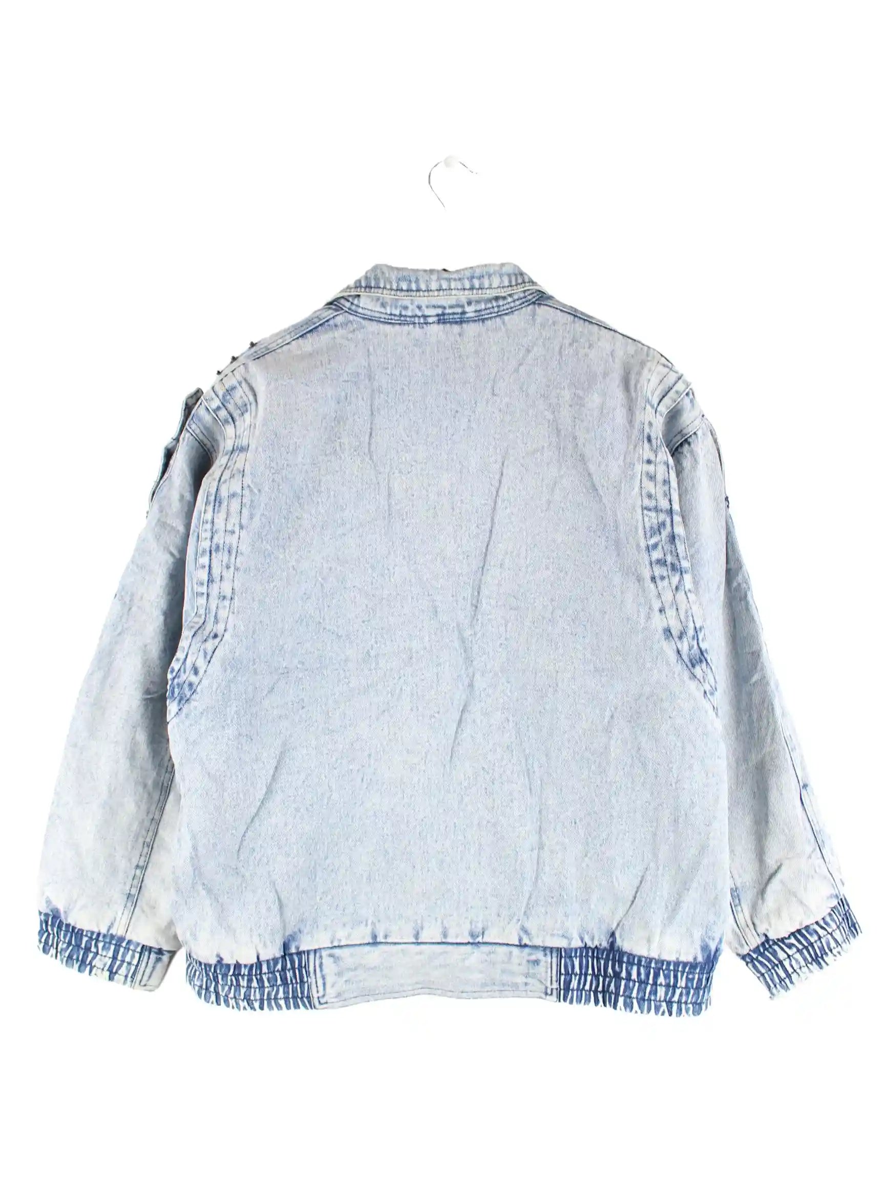 Blaue Vintage Jacke aus den 80'ern in Größe M. Sie ist aus Baumwolle produziert und in sehr gutem Zustand bei uns vorrätig.