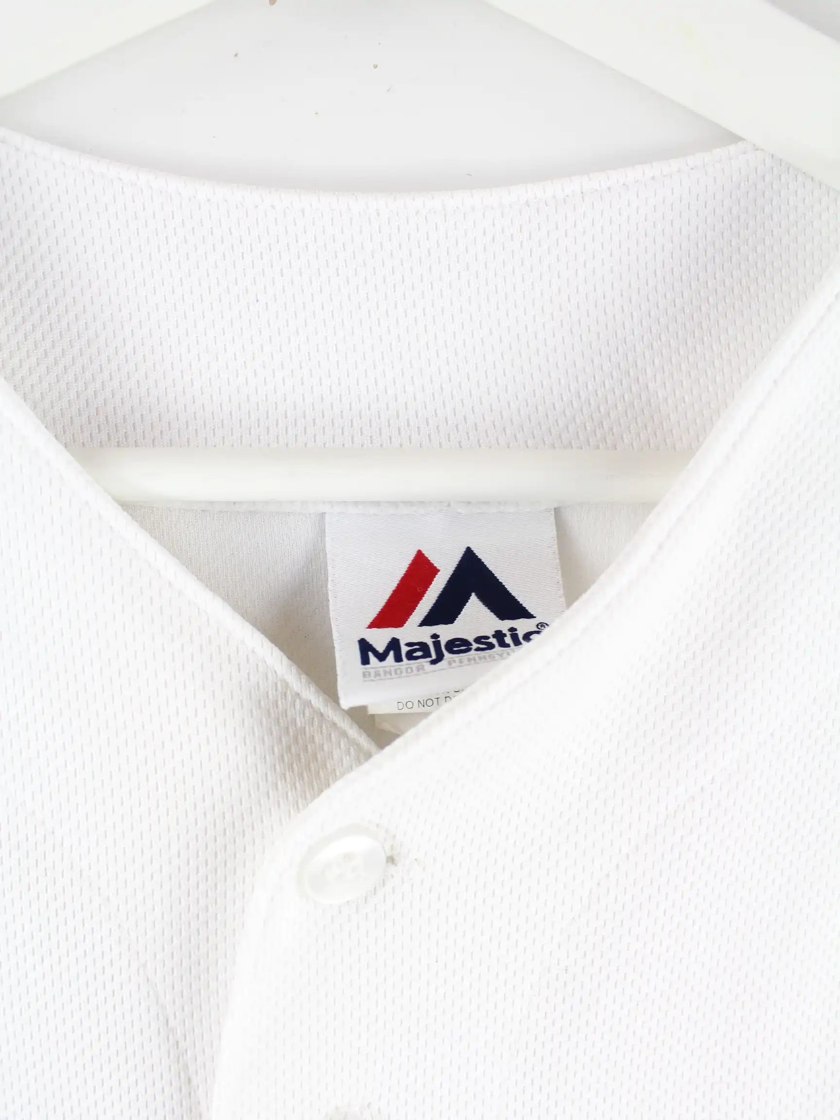 Jersey vom Brand Majestic in Größe L. Es ist aus Synthetik gefertigt und in Weiß in Stock.