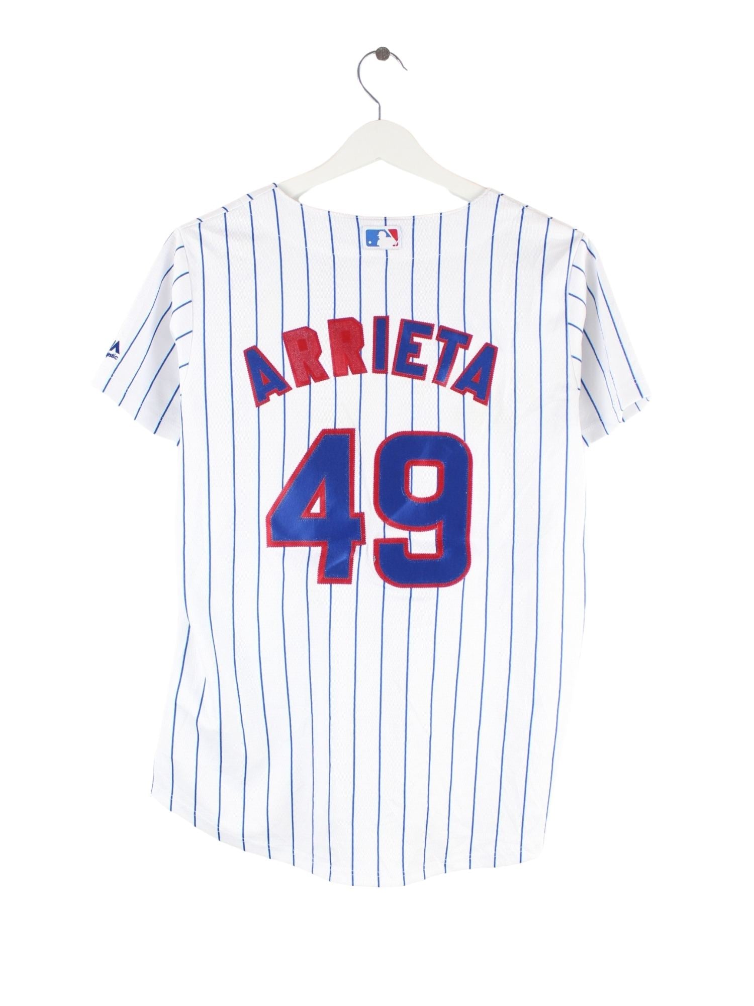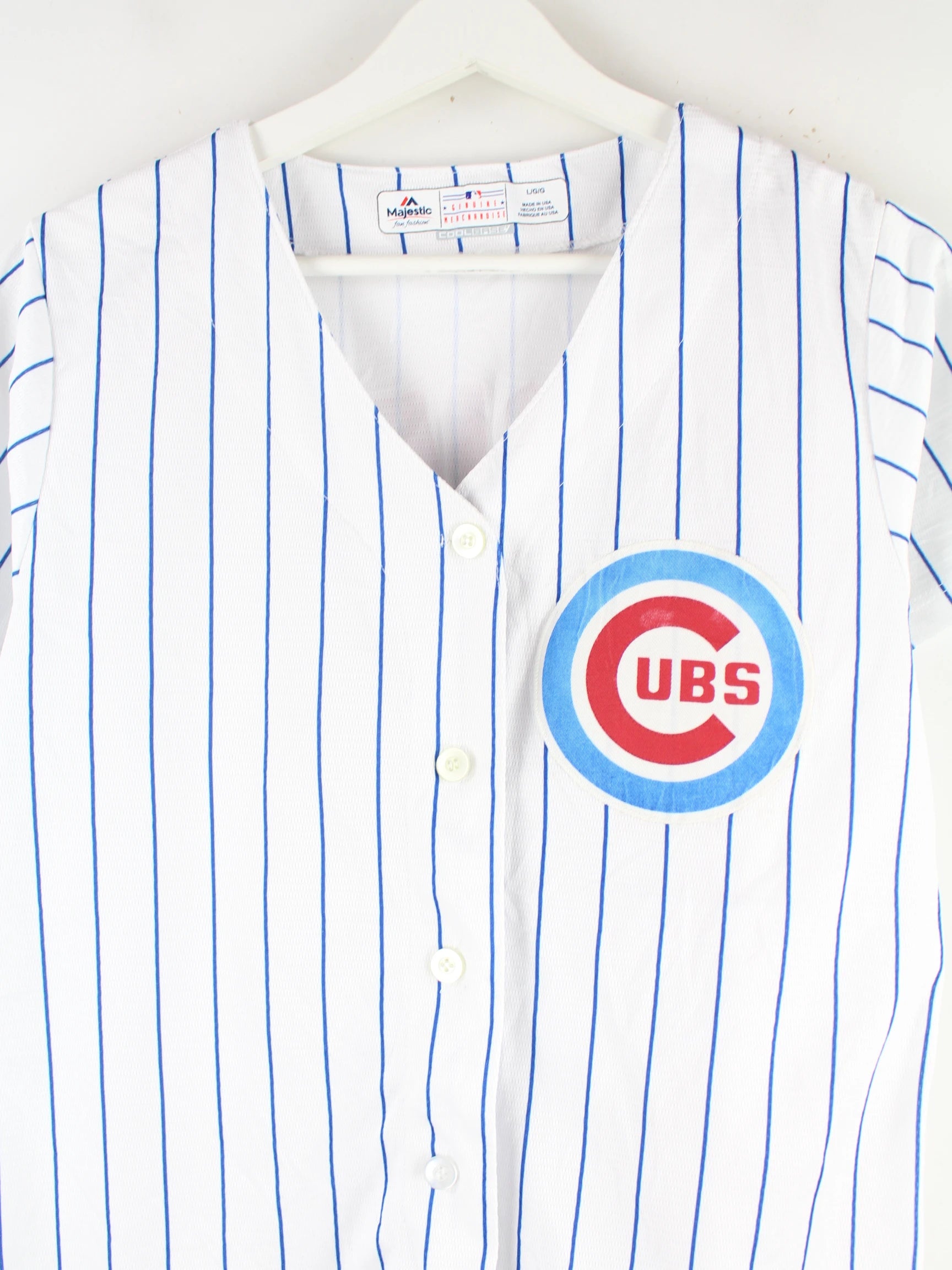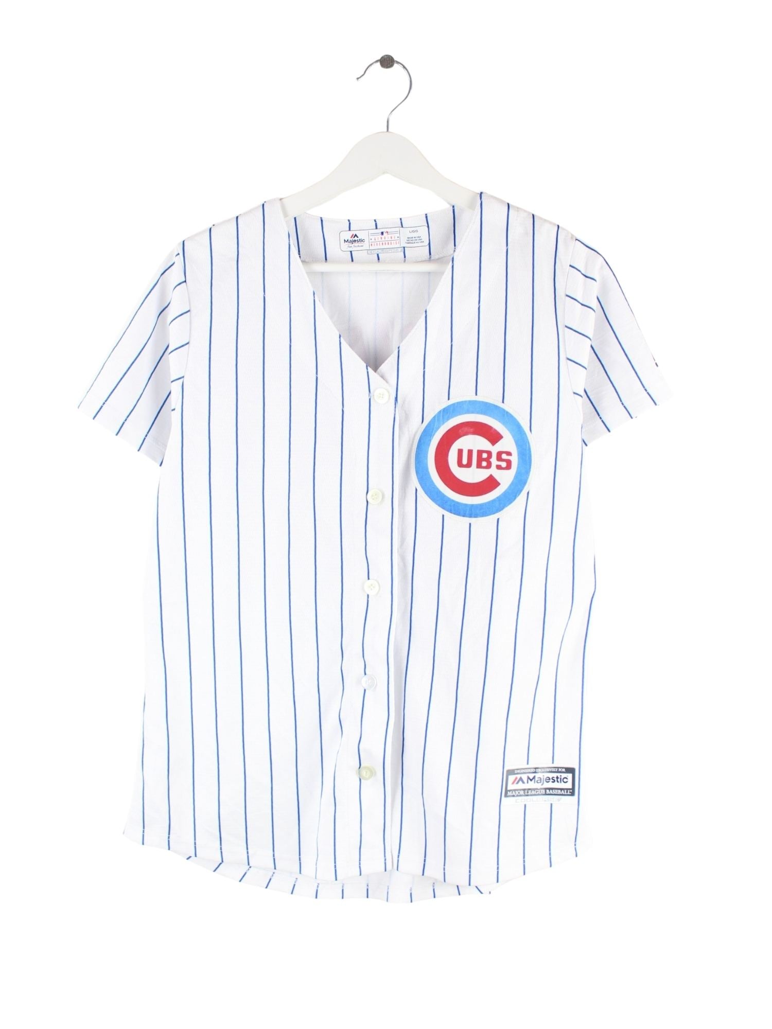 Jersey der Brand Majestic in Größe L. Es ist aus Synthetik angefertigt und in Weiß zu haben. Mit schickem Cubs Print.