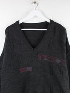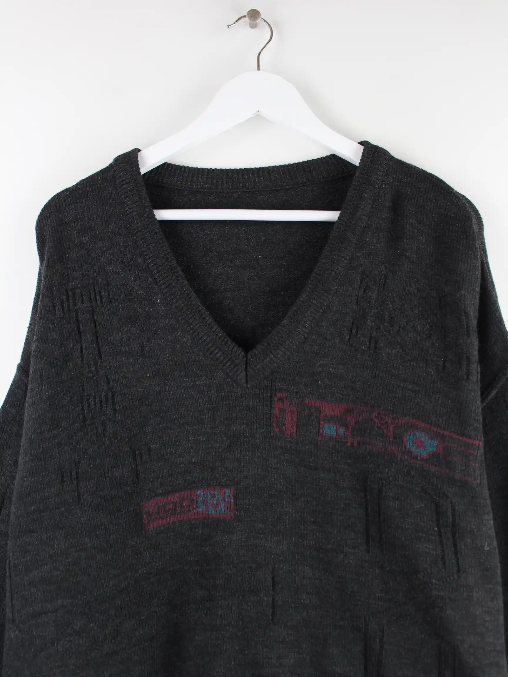 Grauer Vintage Pullover in Größe M. Er ist aus einer Synthetikmischung angefertigt und in sehr gutem Zustand lieferbar.