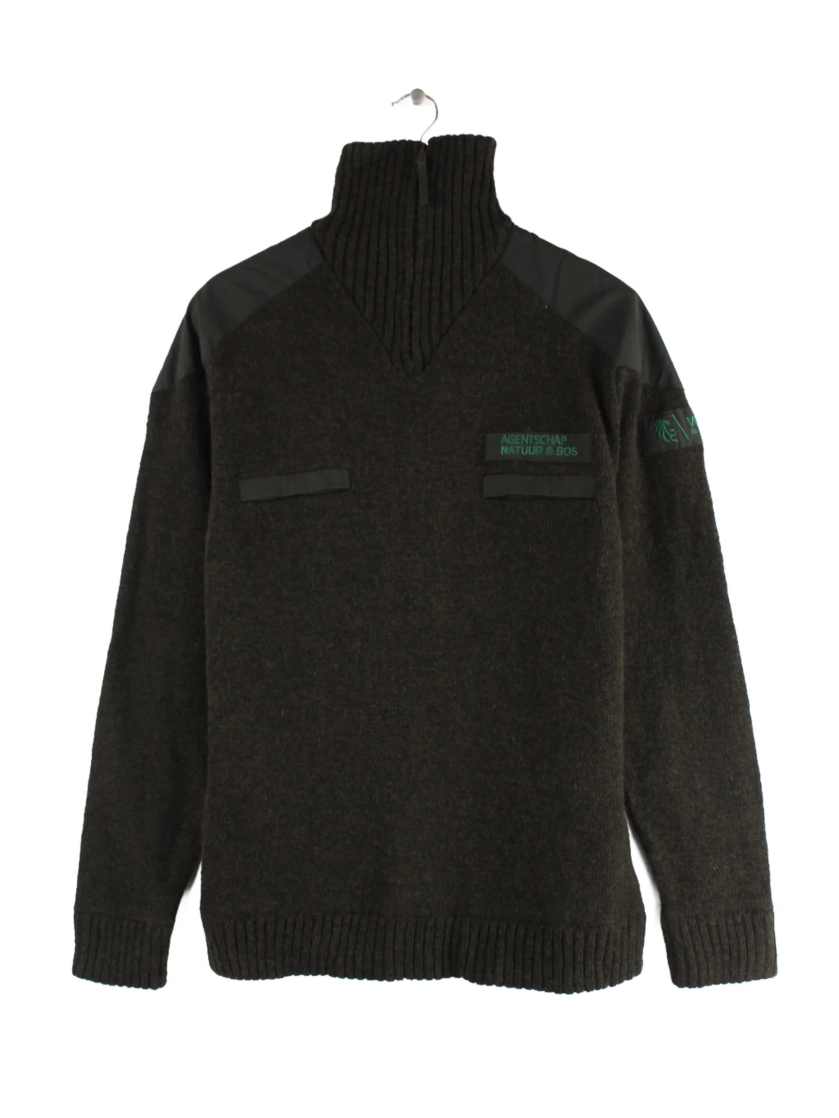 Vintage Pullover mit halbem Reißverschluß in Größe L aus den 90'ern. Er ist aus Baumwolle gemacht und in Braun im Bestand.