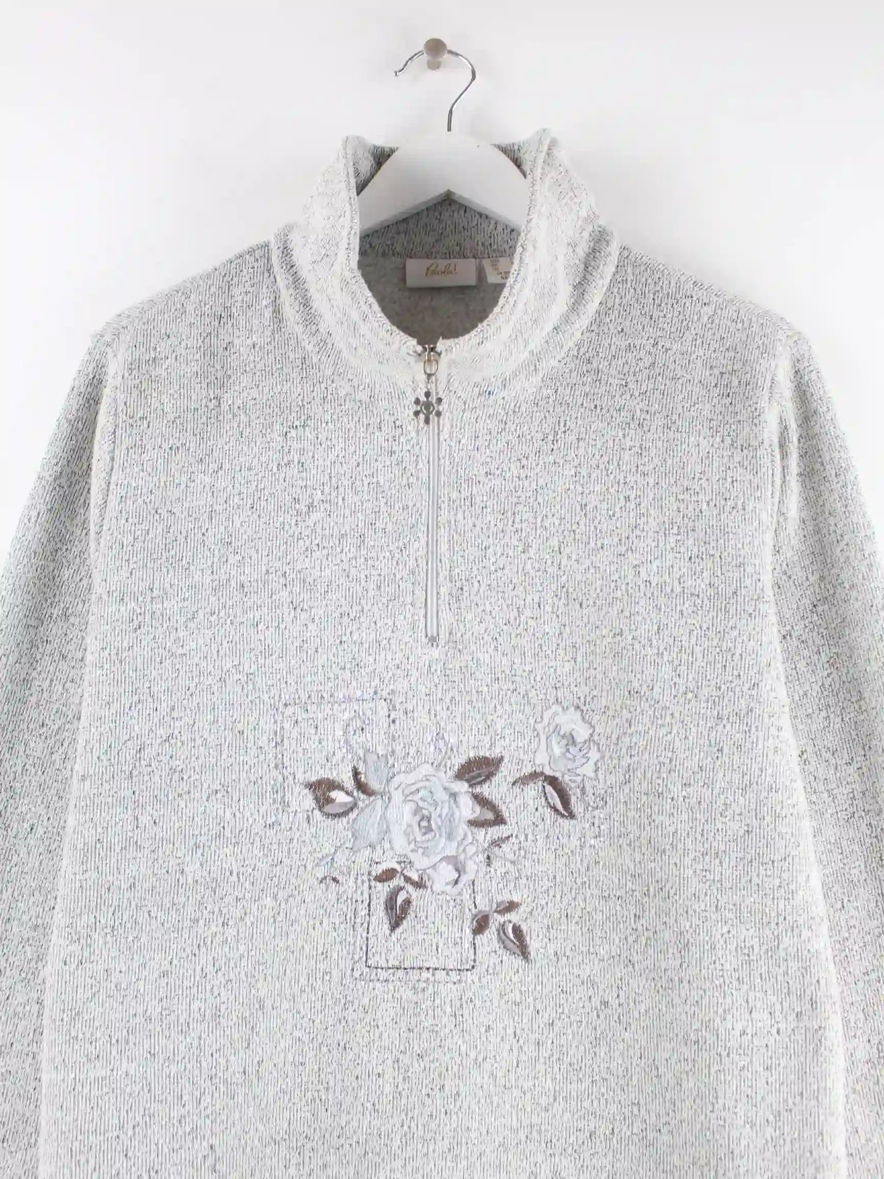 Vintage Damen 00s Flower Half Zip Pullover Grau L
