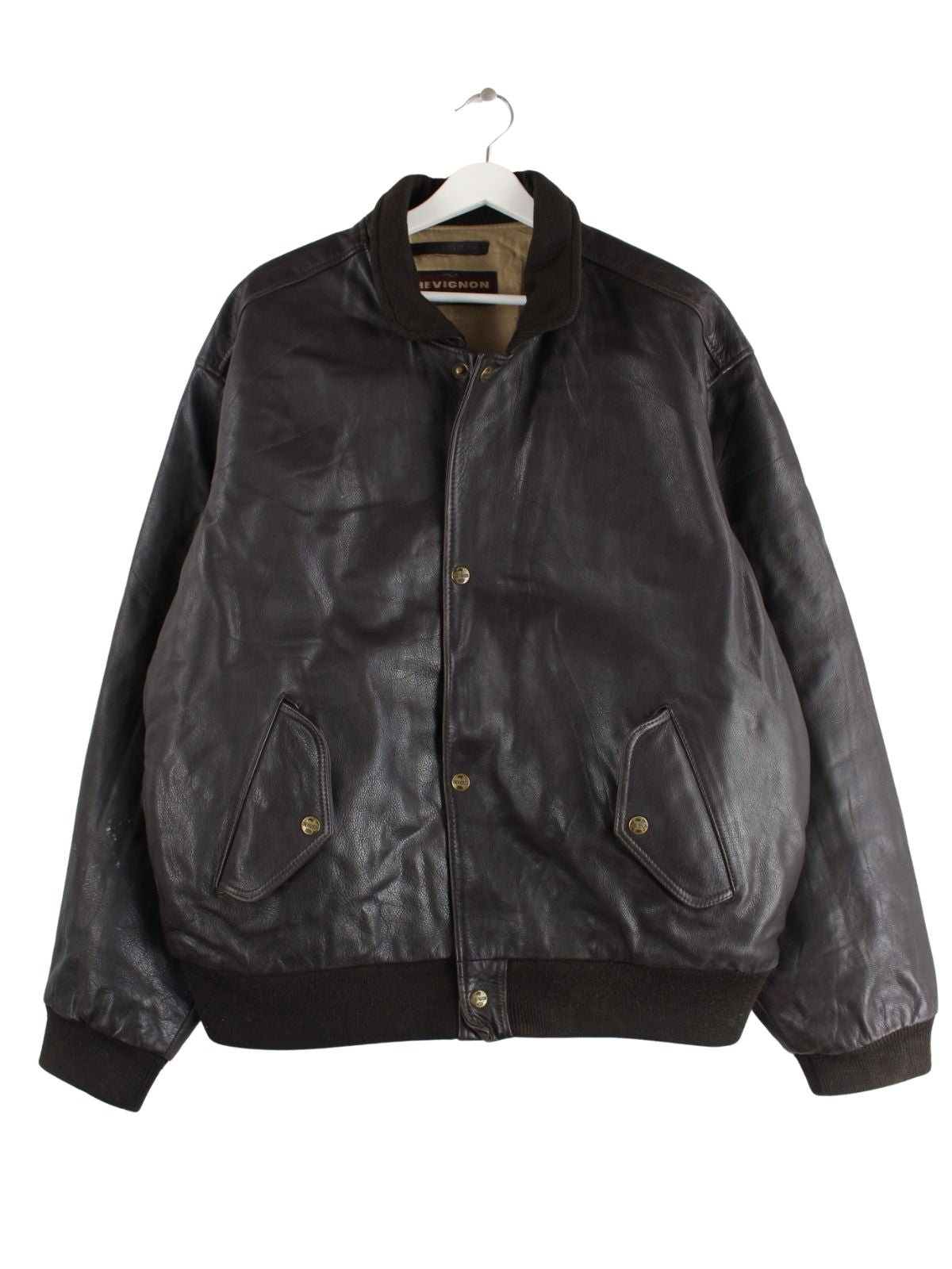 Jacke von Chevignon in Größe XXL aus den 90'ern. Sie ist aus Leder und in Schwarz zu haben.