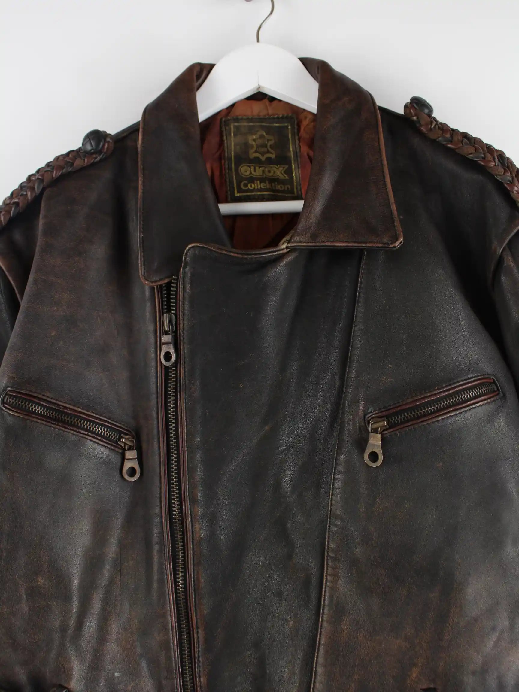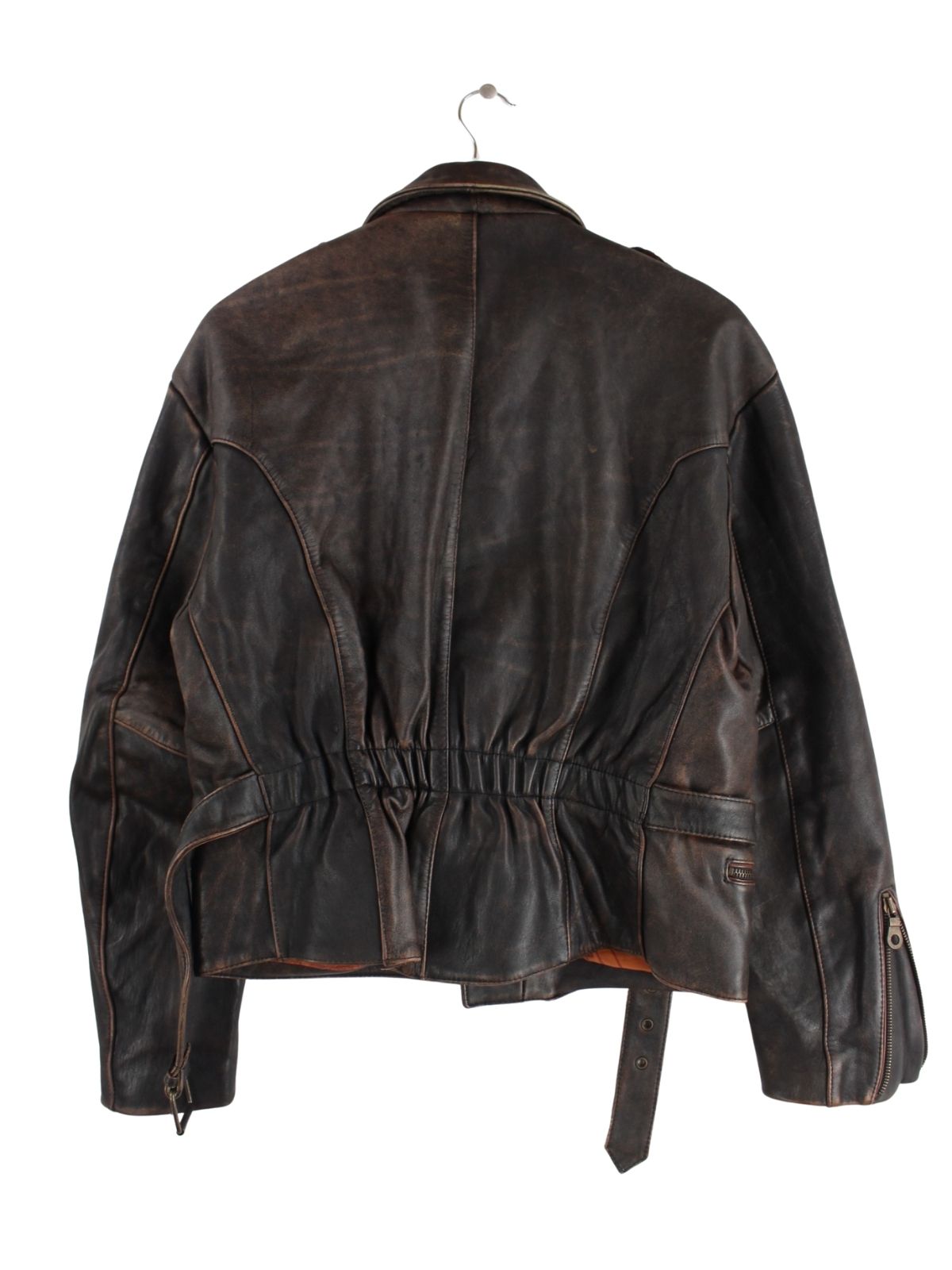 Vintage Jacke in Größe M. Sie ist aus Leder gemacht und in Braun bei uns vorrätig.