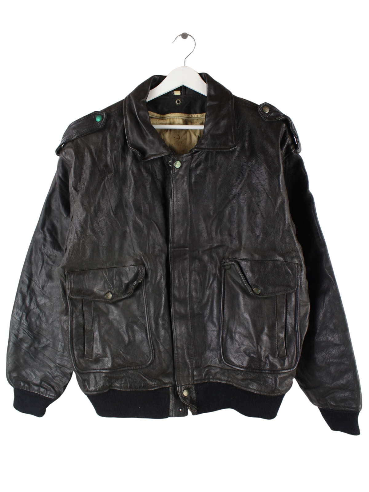 Vintage 90s Bomber Leder Jacke Schwarz XL