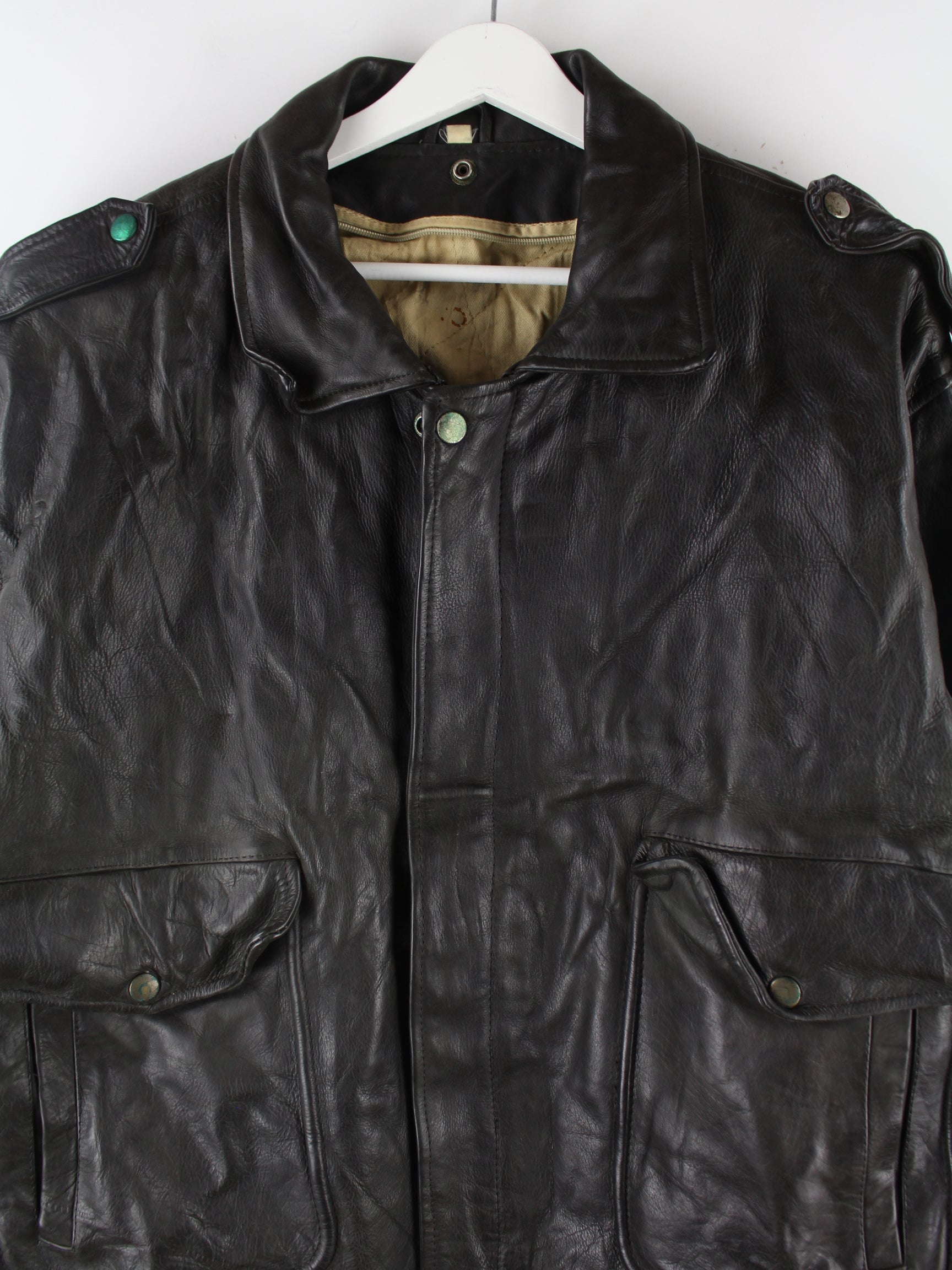 Vintage Jacke in Größe XL aus den 90'ern. Sie ist aus Leder hergestellt und in Schwarz auf Lager.