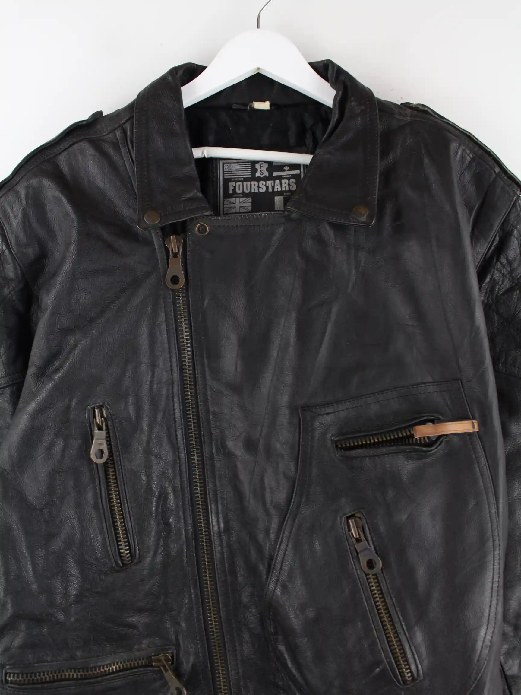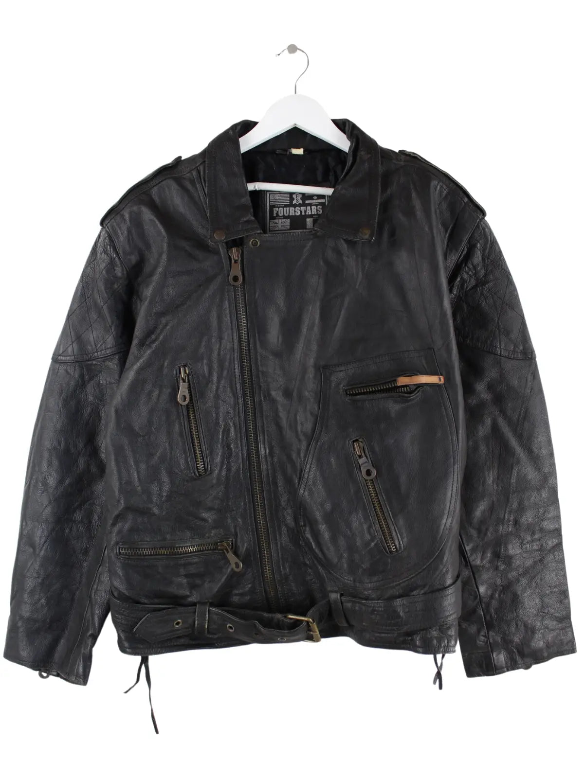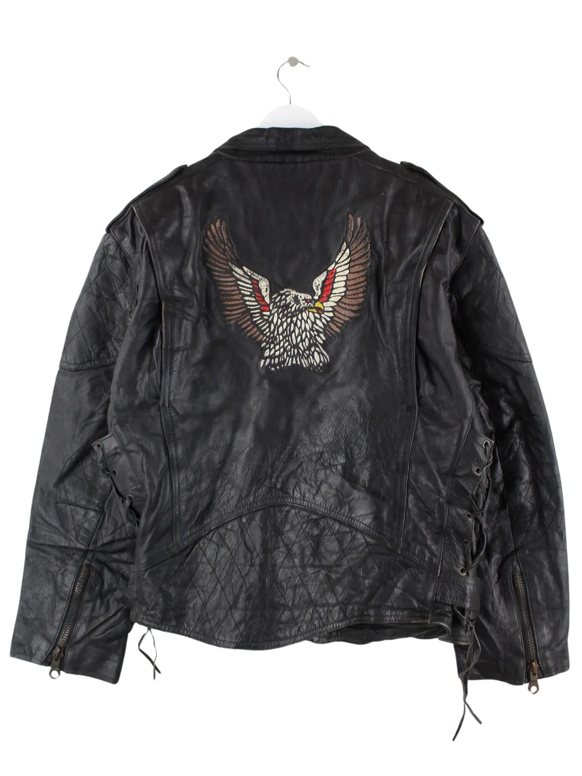 Vintage 90s Eagle Print Leder Biker Jacke Schwarz L