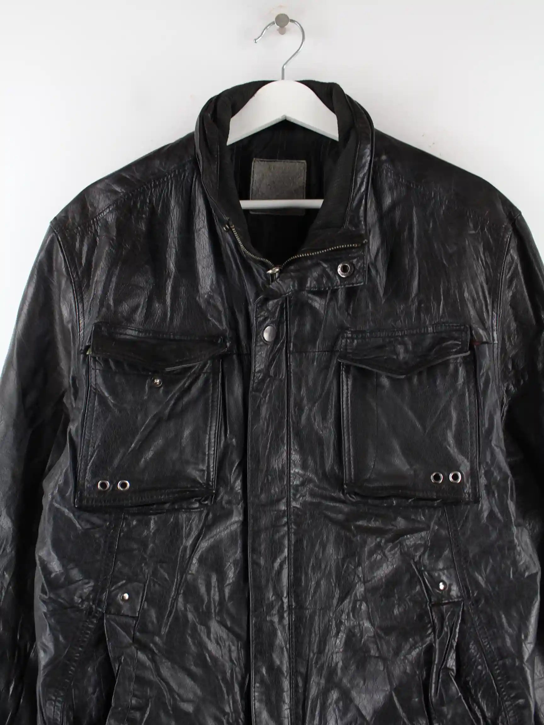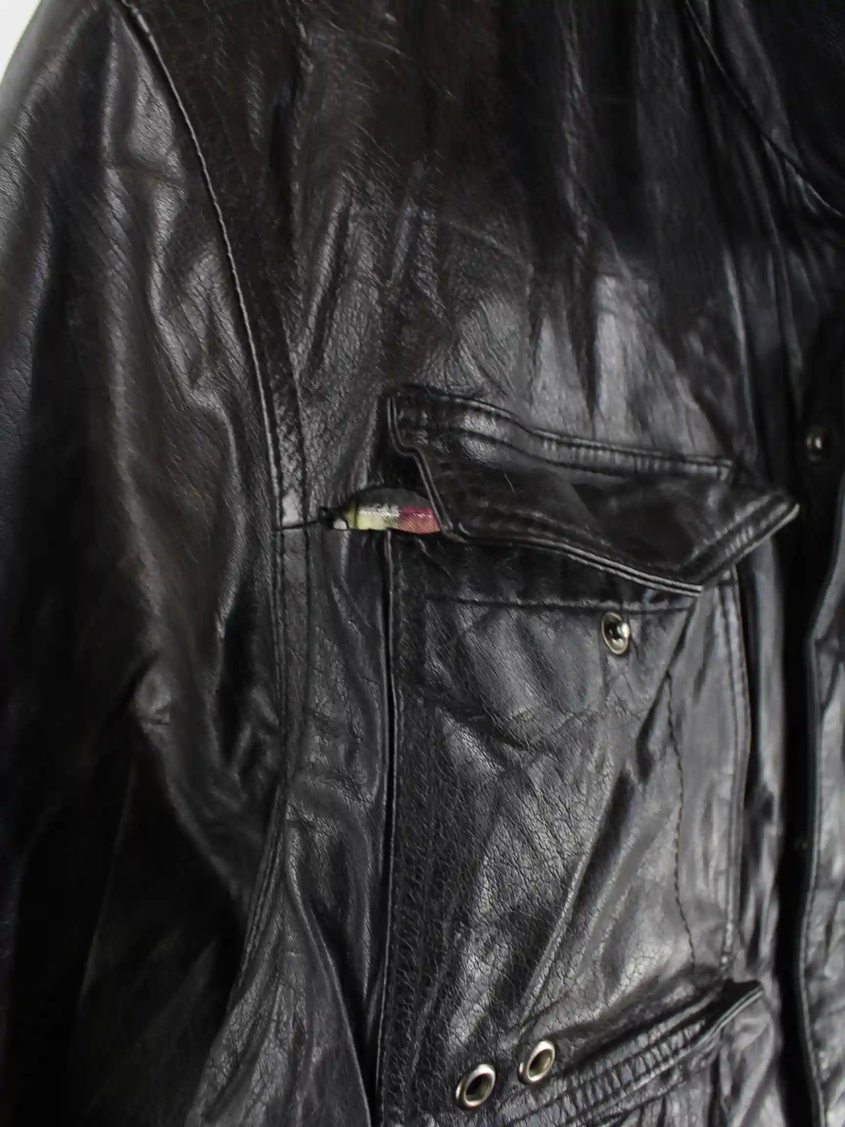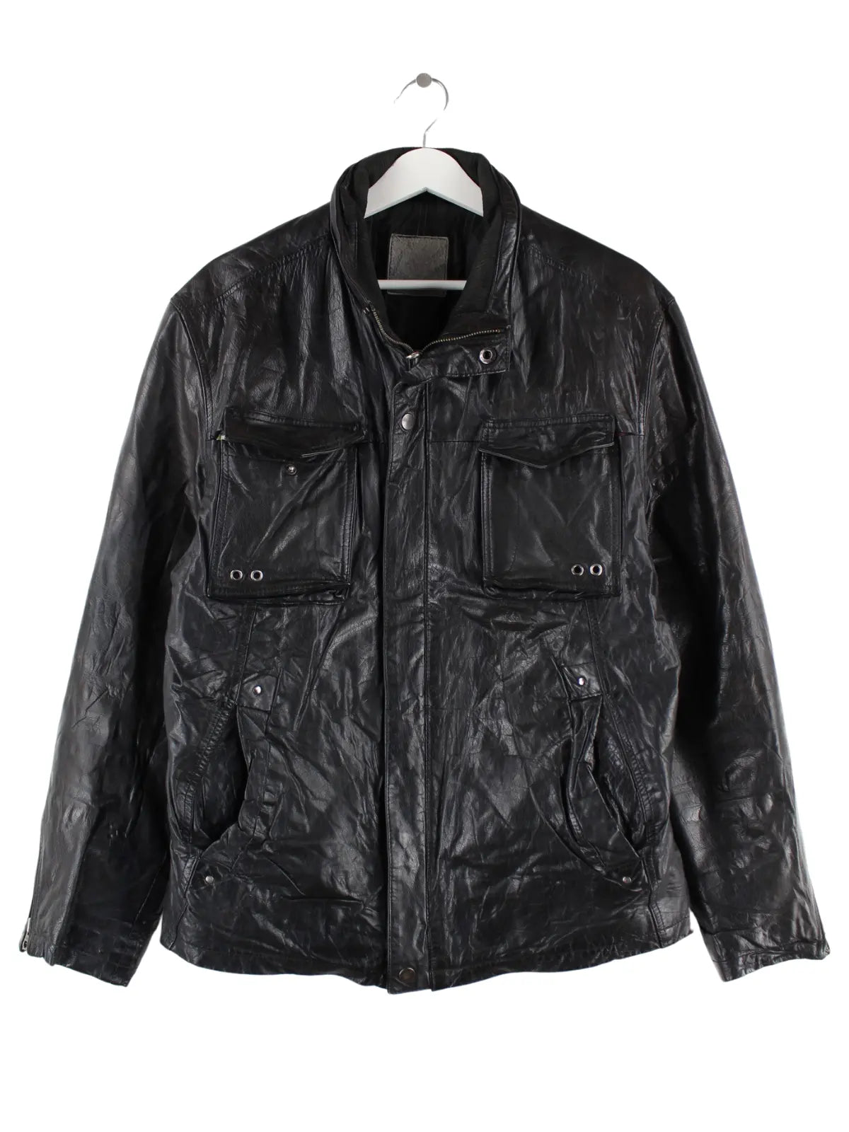 Schwarze Vintage Jacke aus den 90'ern in Größe L. Sie ist aus Leder . Den Zustand würden wir als 'In Ordnung' bezeichnen (vergl. Bilder).