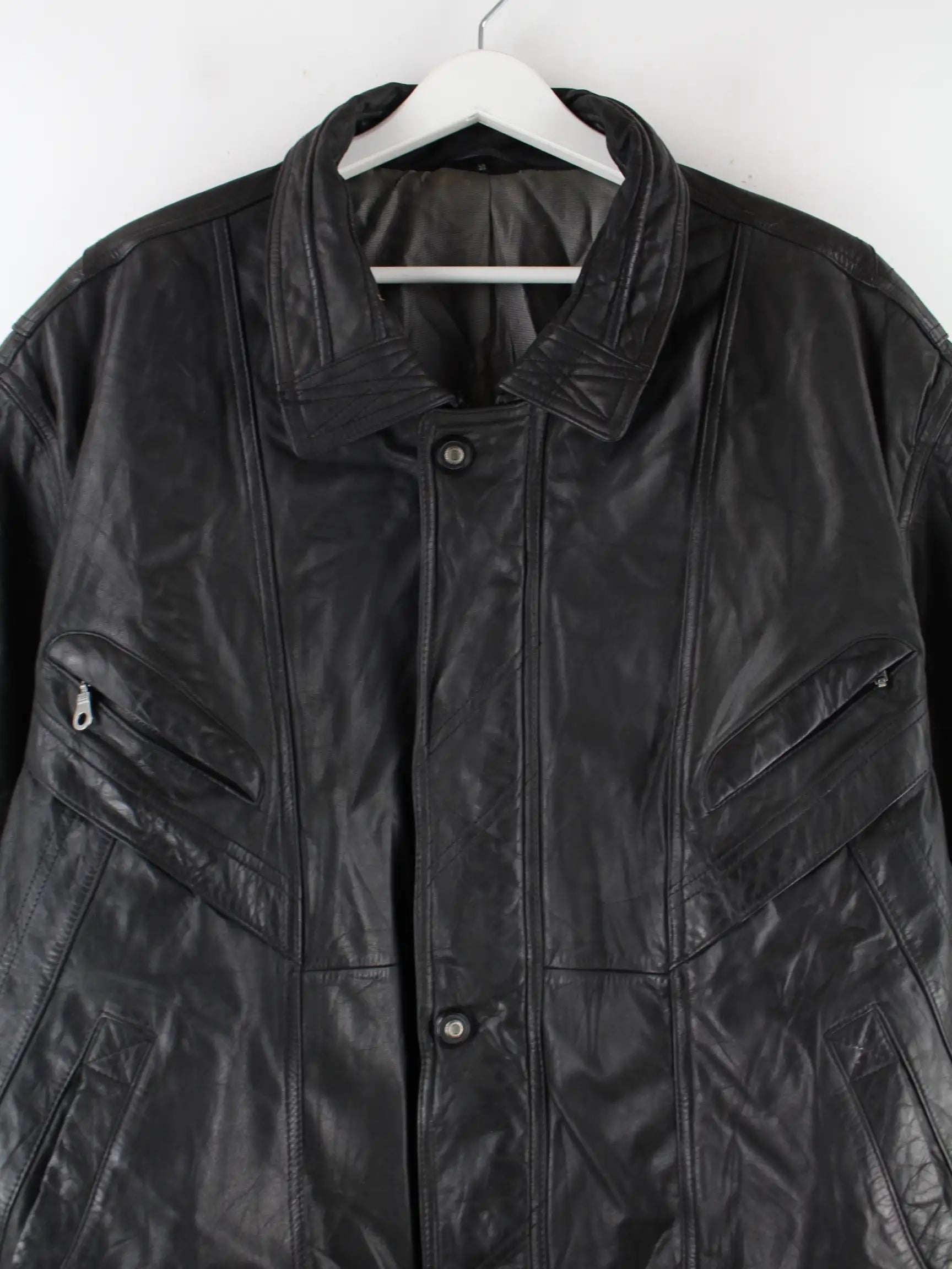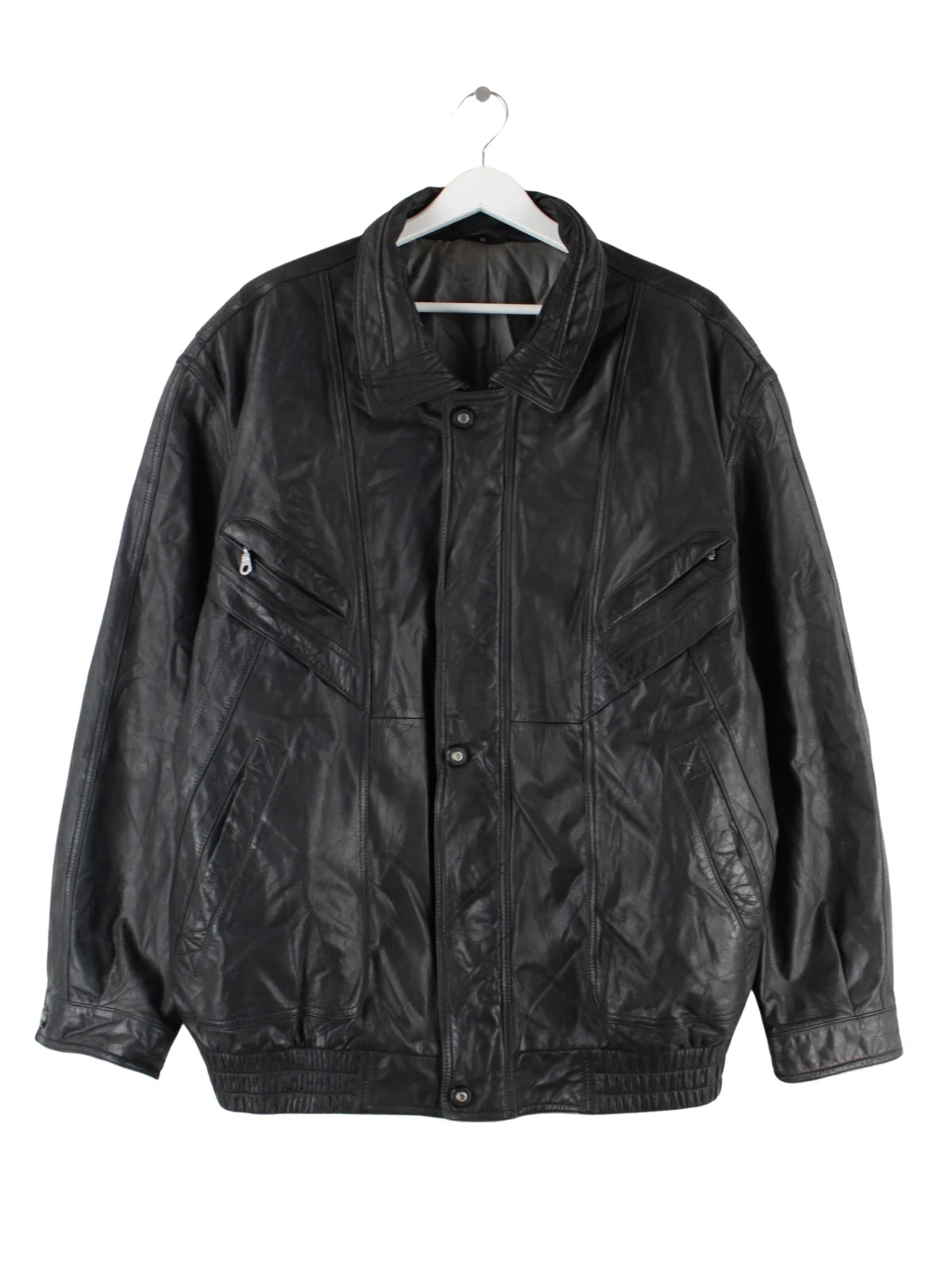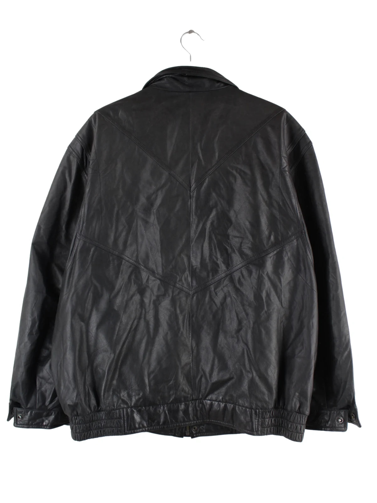 Schwarze Vintage Jacke aus den 90'ern in Größe XXL. Sie ist aus Leder gefertigt und in sehr gutem Zustand vorrätig.