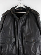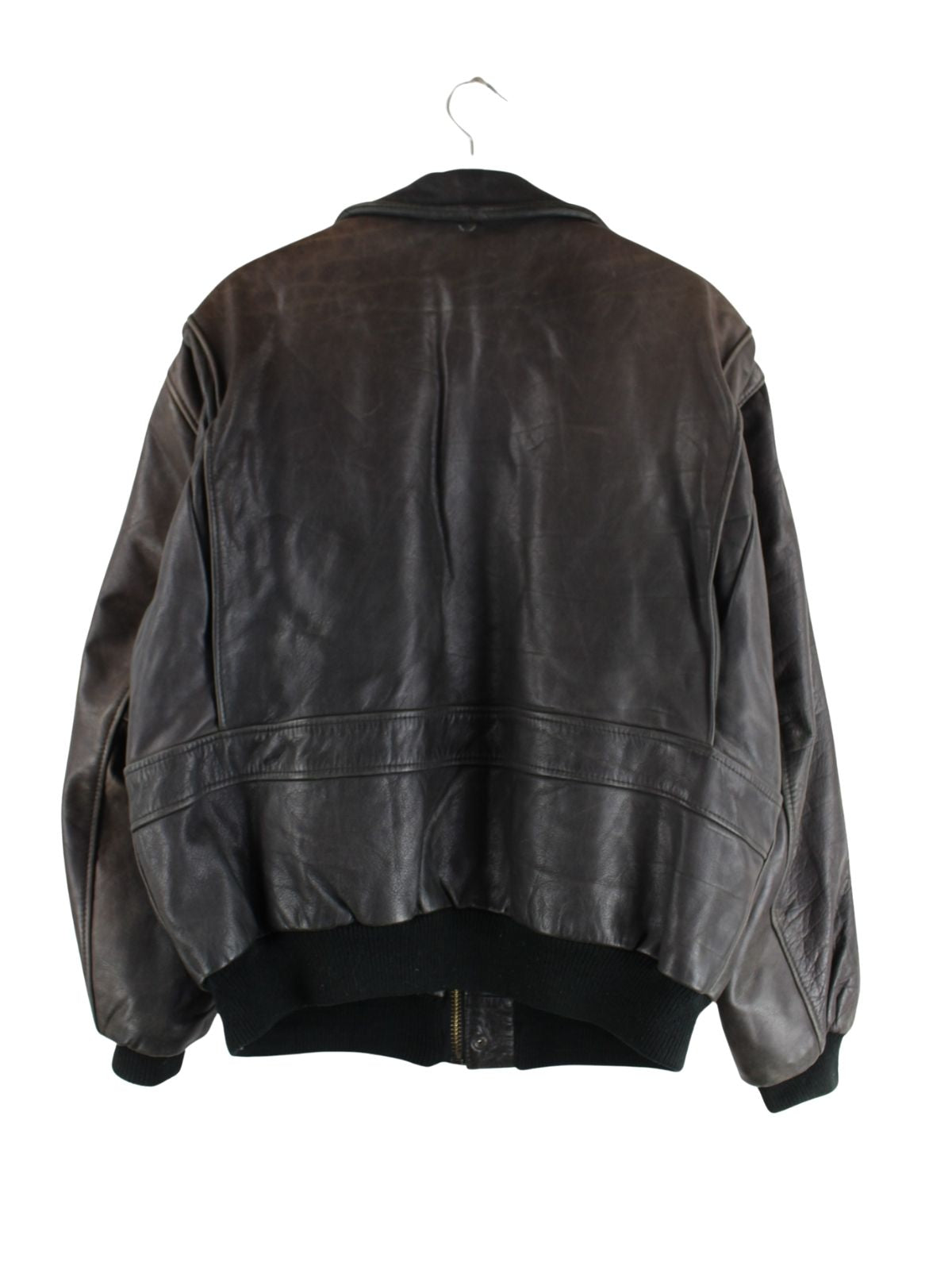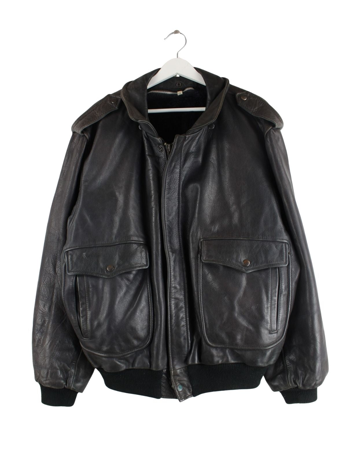 Vintage Jacke in Größe XXL aus den 90'ern. Sie ist aus Leder angefertigt und in Braun zu haben.