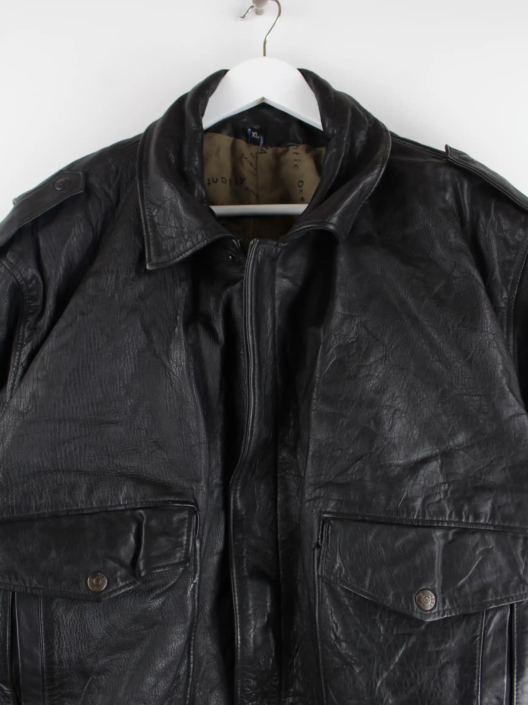 Schwarze Vintage Jacke aus den 90'ern in Größe XL. Sie ist aus Leder angefertigt und in sehr gutem Zustand zu haben.