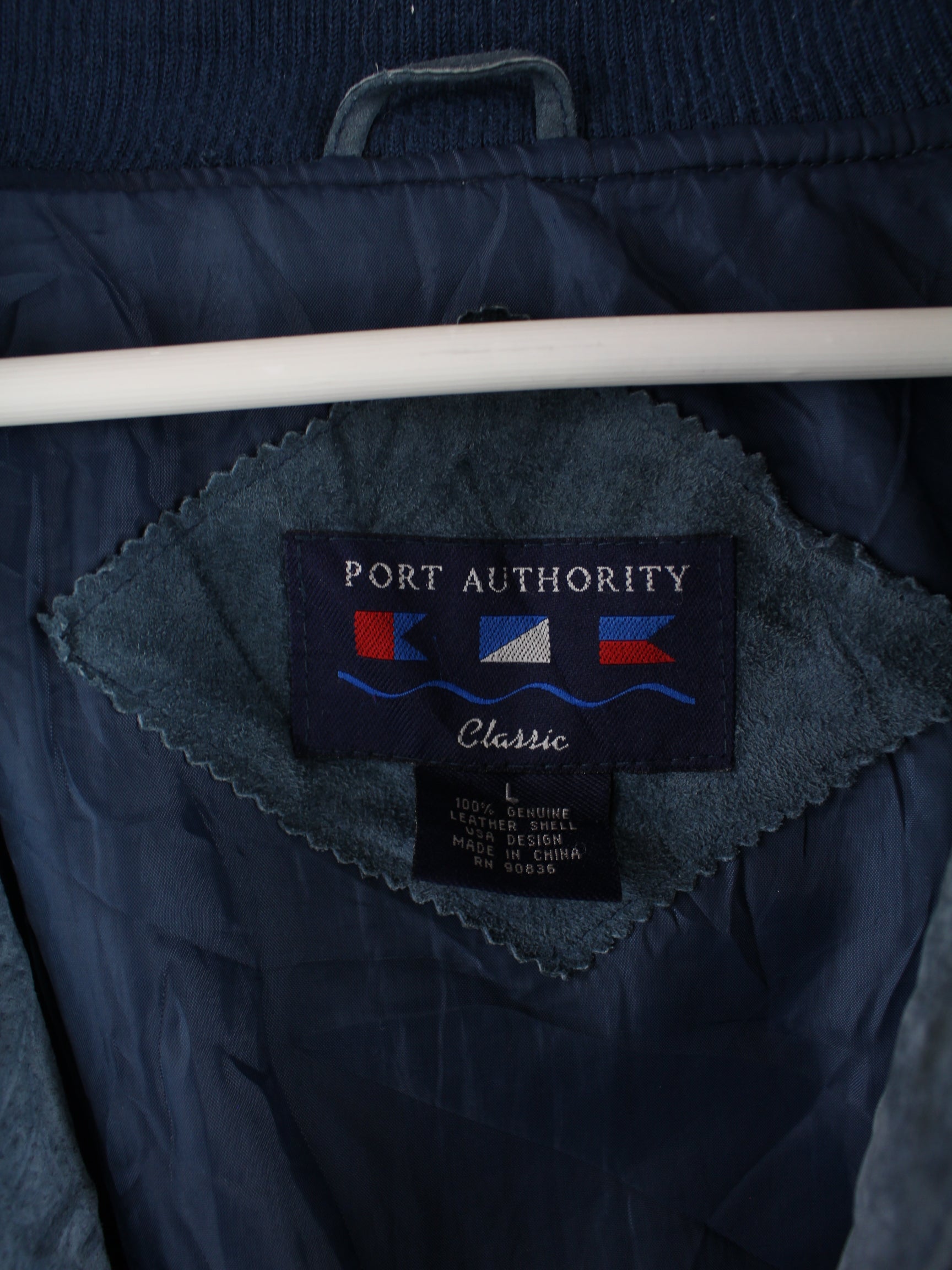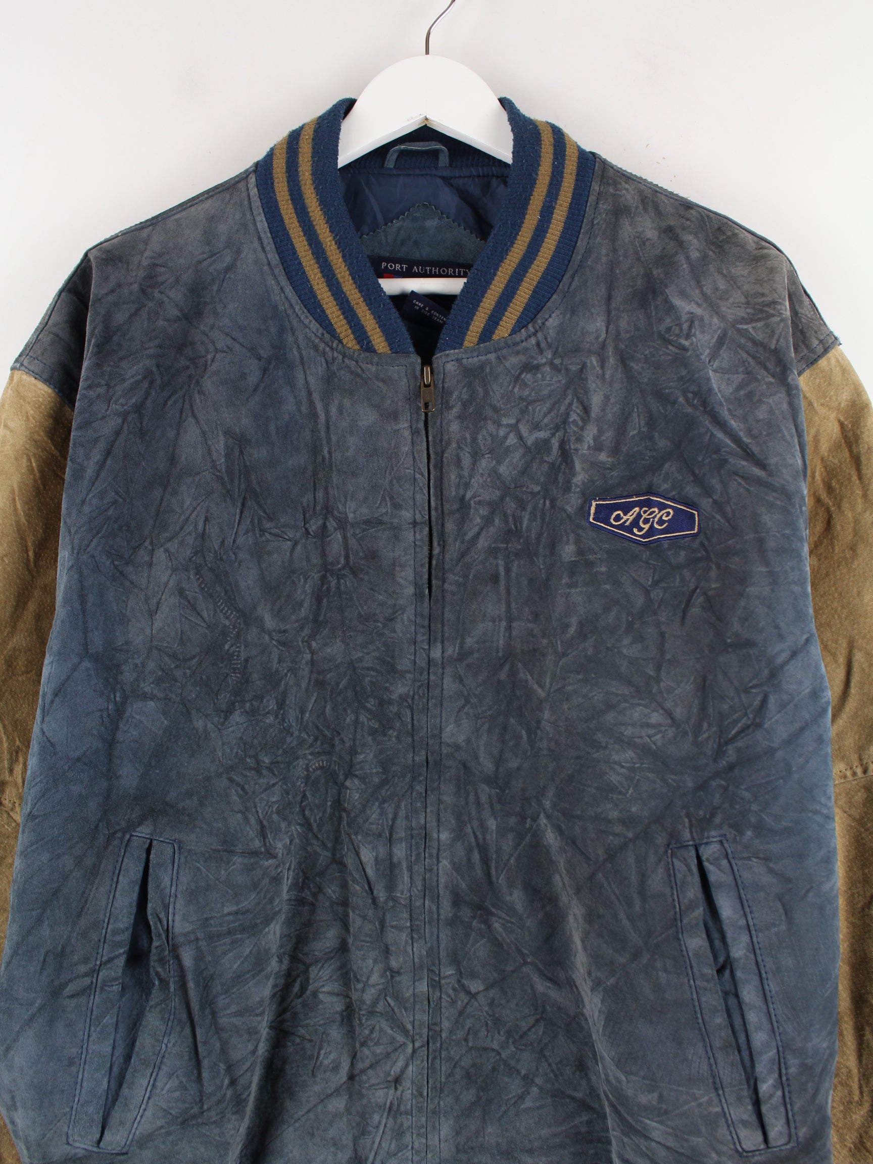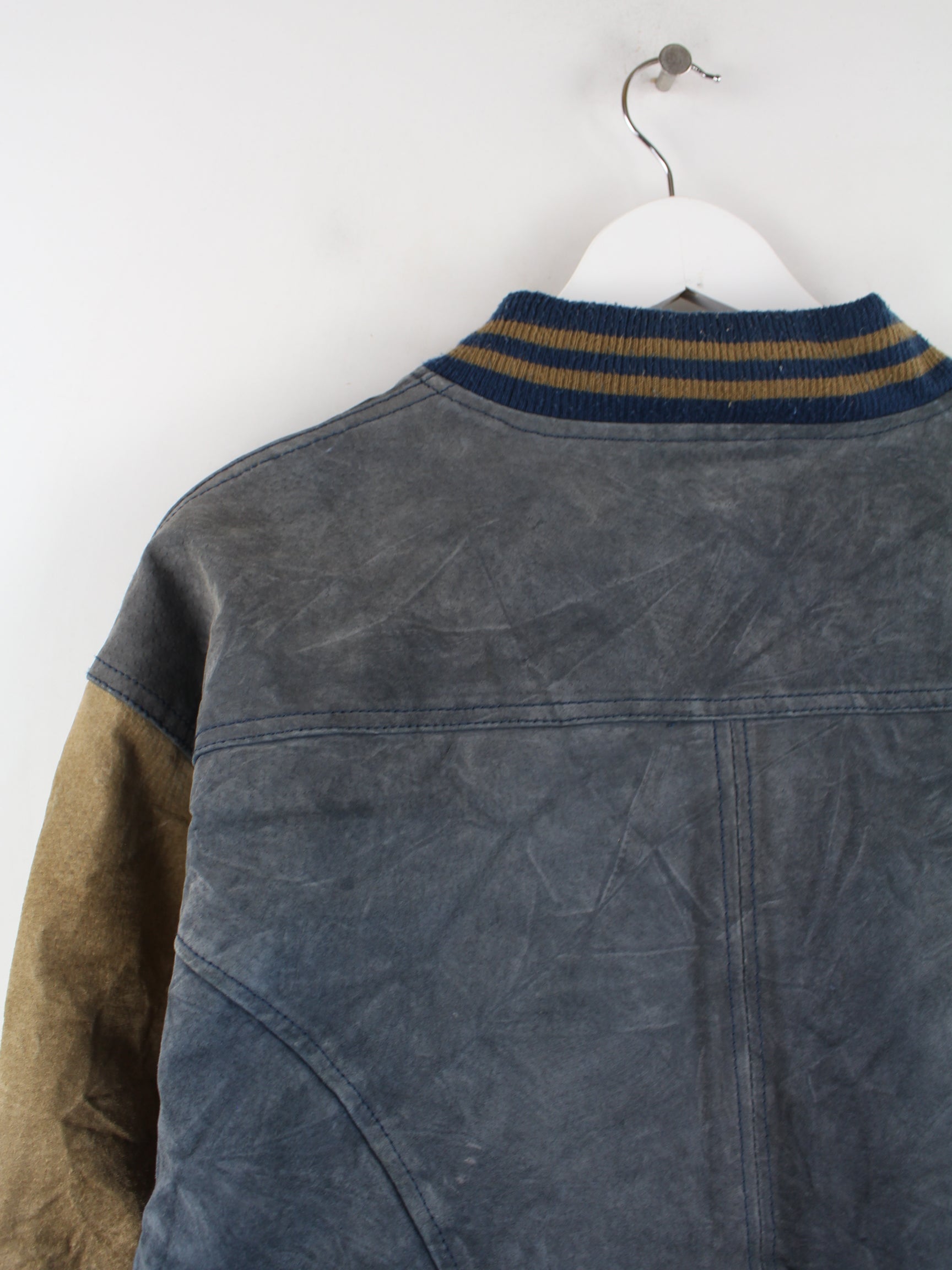 Blaue Vintage Jacke aus den 90'ern in Größe L. Sie ist aus Leder gefertigt und in gutem Zustand zu haben.
