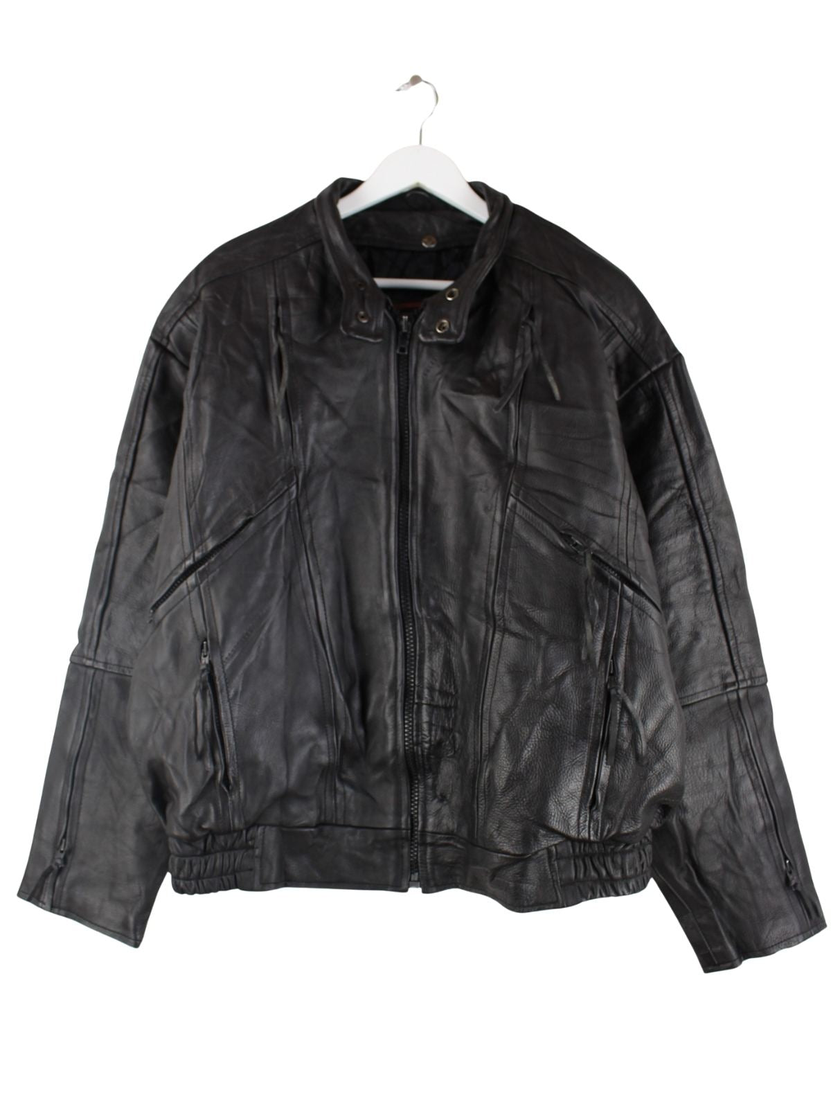 Vintage Biker Leder Jacke Schwarz L