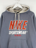 Hoodie von Nike in Größe M. Er ist aus einer Baumwollmischung gemacht und in Blau in Stock.