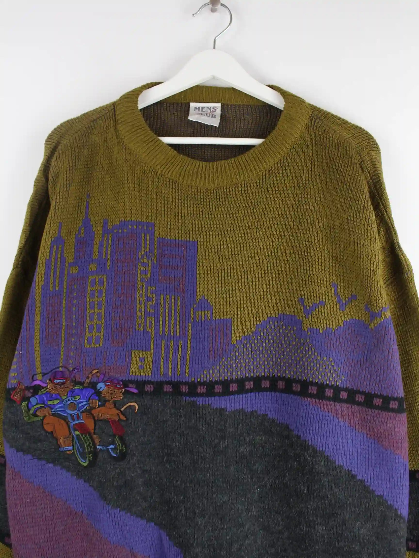 Vintage Pullover in Größe XL aus den 90'ern. Er ist aus Baumwolle angefertigt und in Khaki bei uns vorrätig.