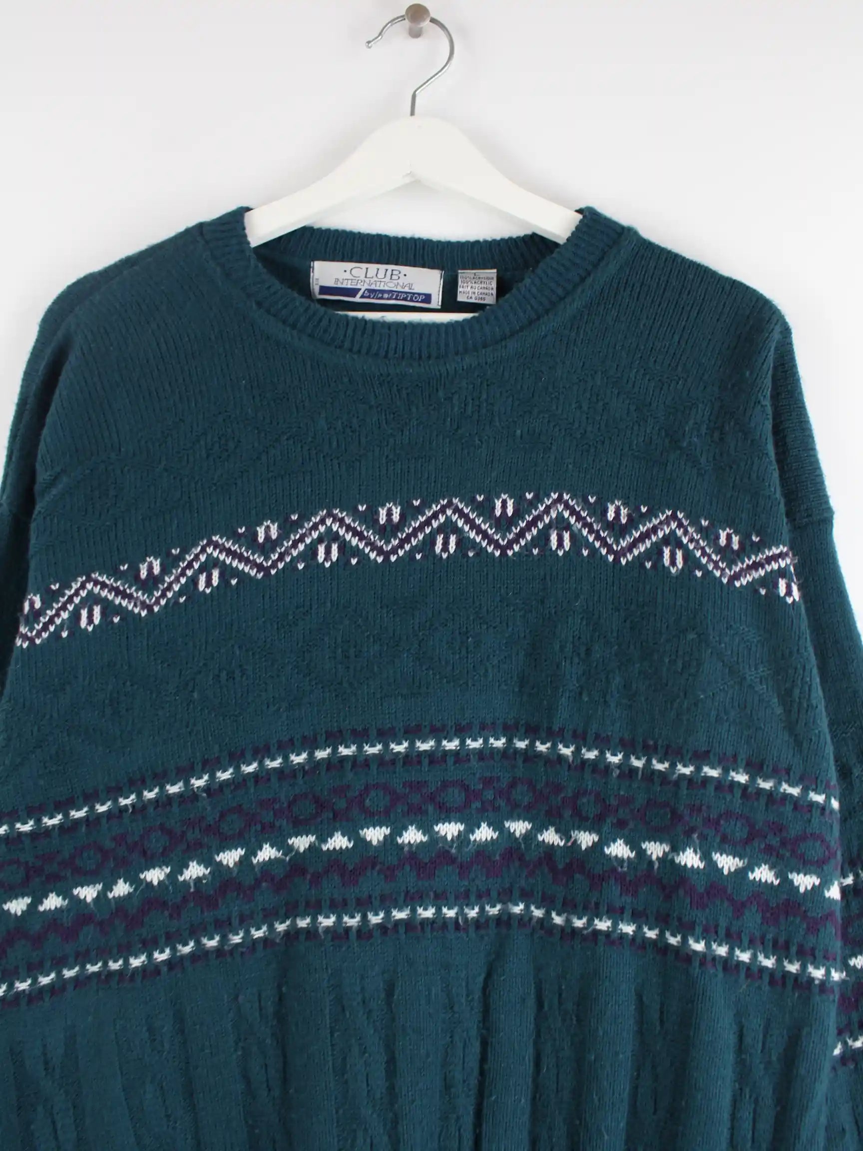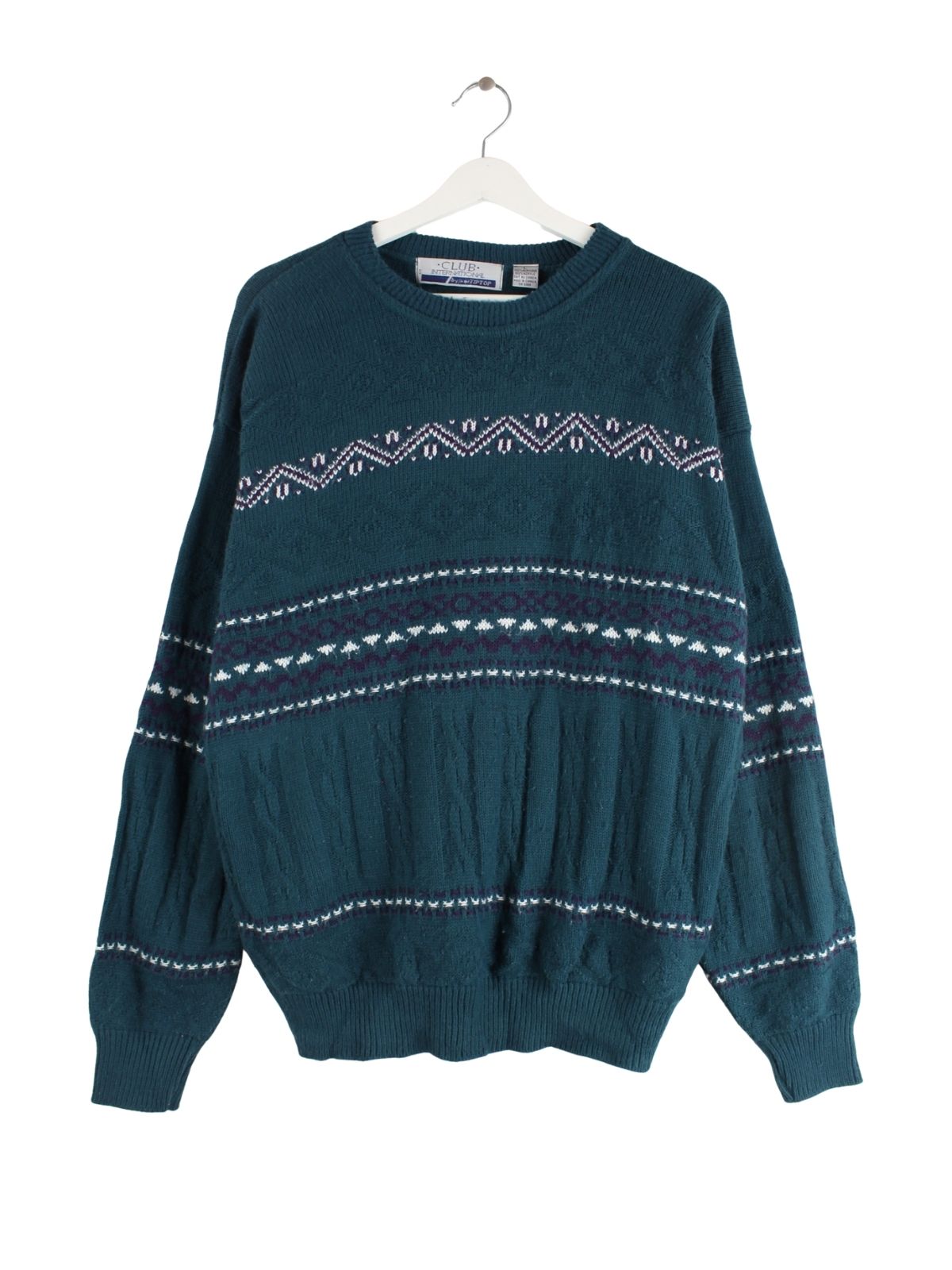 Vintage Pullover in Größe L aus den 90'ern. Er ist aus Acryl angefertigt und in Grün bei uns zu bekommen.