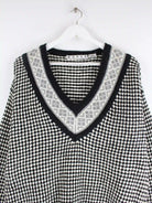 Vintage Pullover in Größe M aus den 90'ern. Er ist aus einer Synthetikmischung und in Schwarz bei uns vorrätig.
