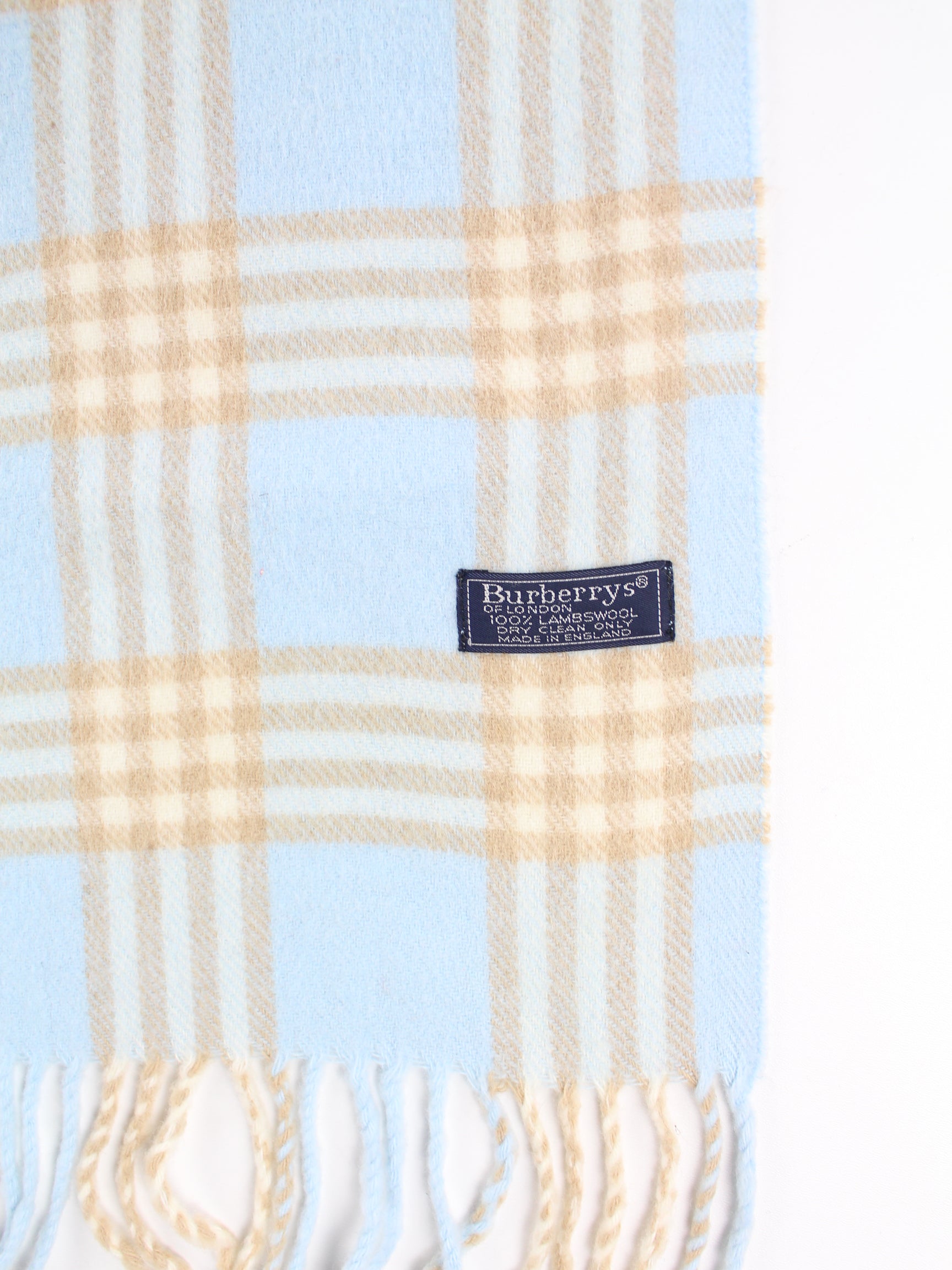 Burberry Damen 90s Vintage 100% Lambswool Schal Blau / Beige