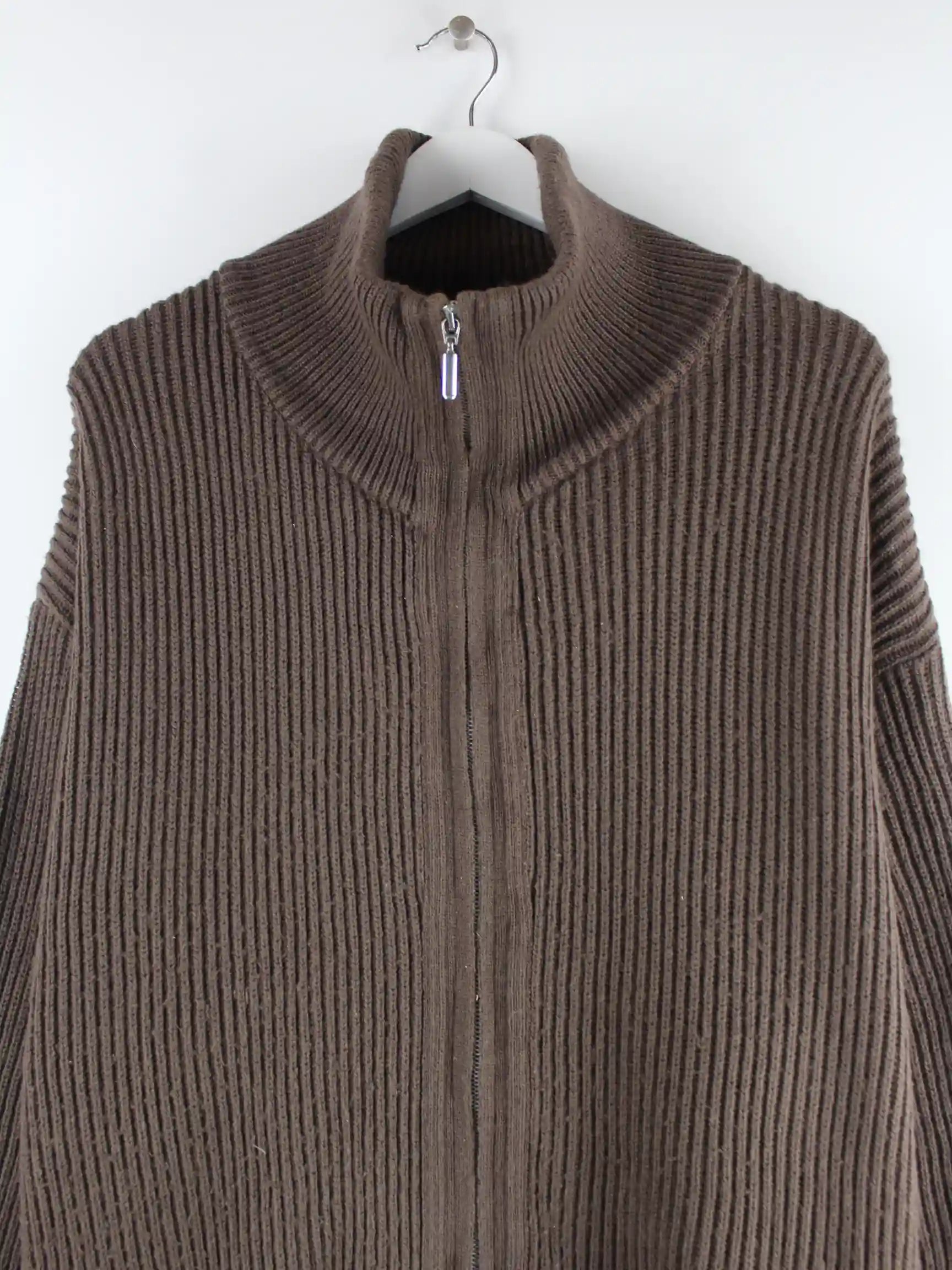 Vintage Strickjacke mit Zip in Größe L aus den 90'ern. Sie ist aus Baumwolle gemacht und in Braun vorrätig.