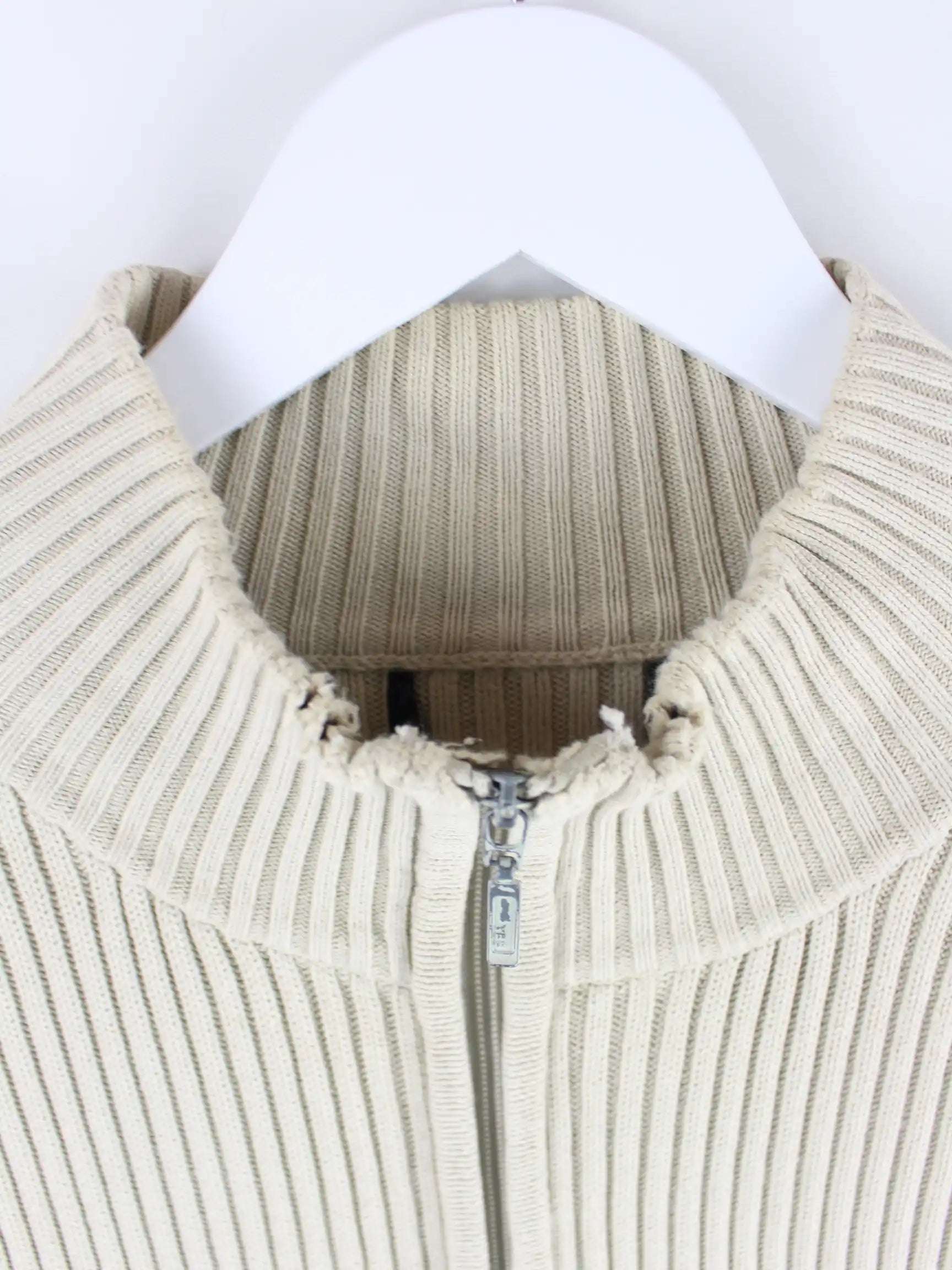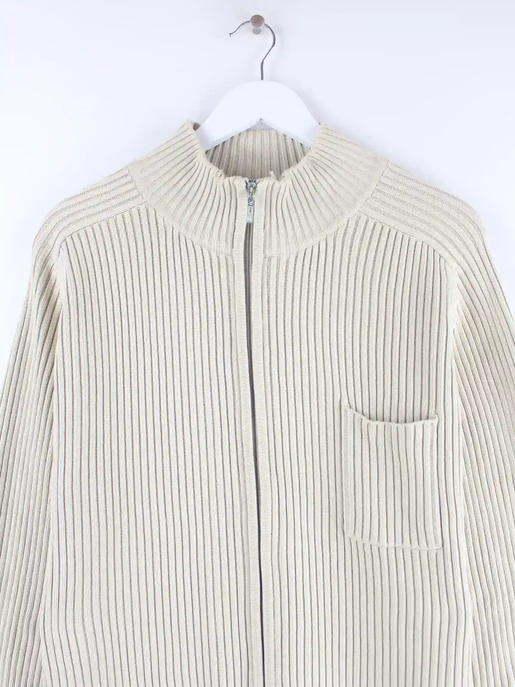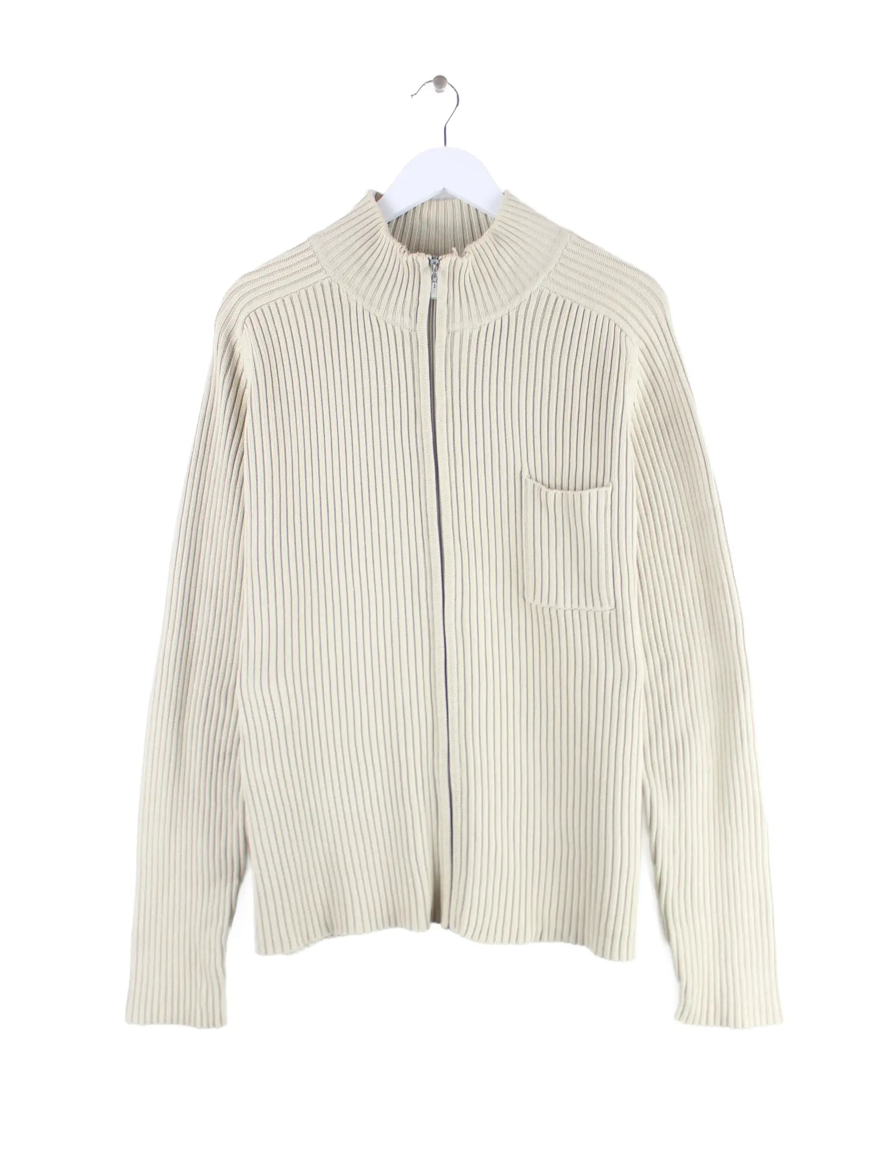 Vintage Damen Ribbed Strickjacke Beige XL