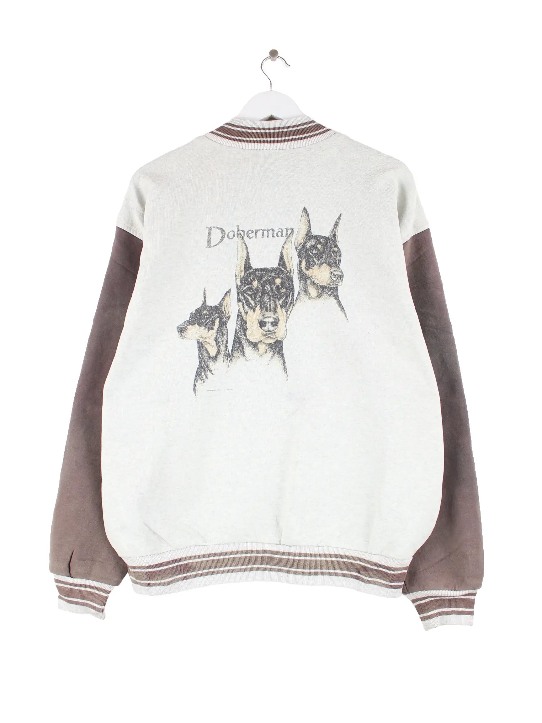 Fruit of the Loom 90s Vintage Doberman Varsity Sweatjacke Grau XL