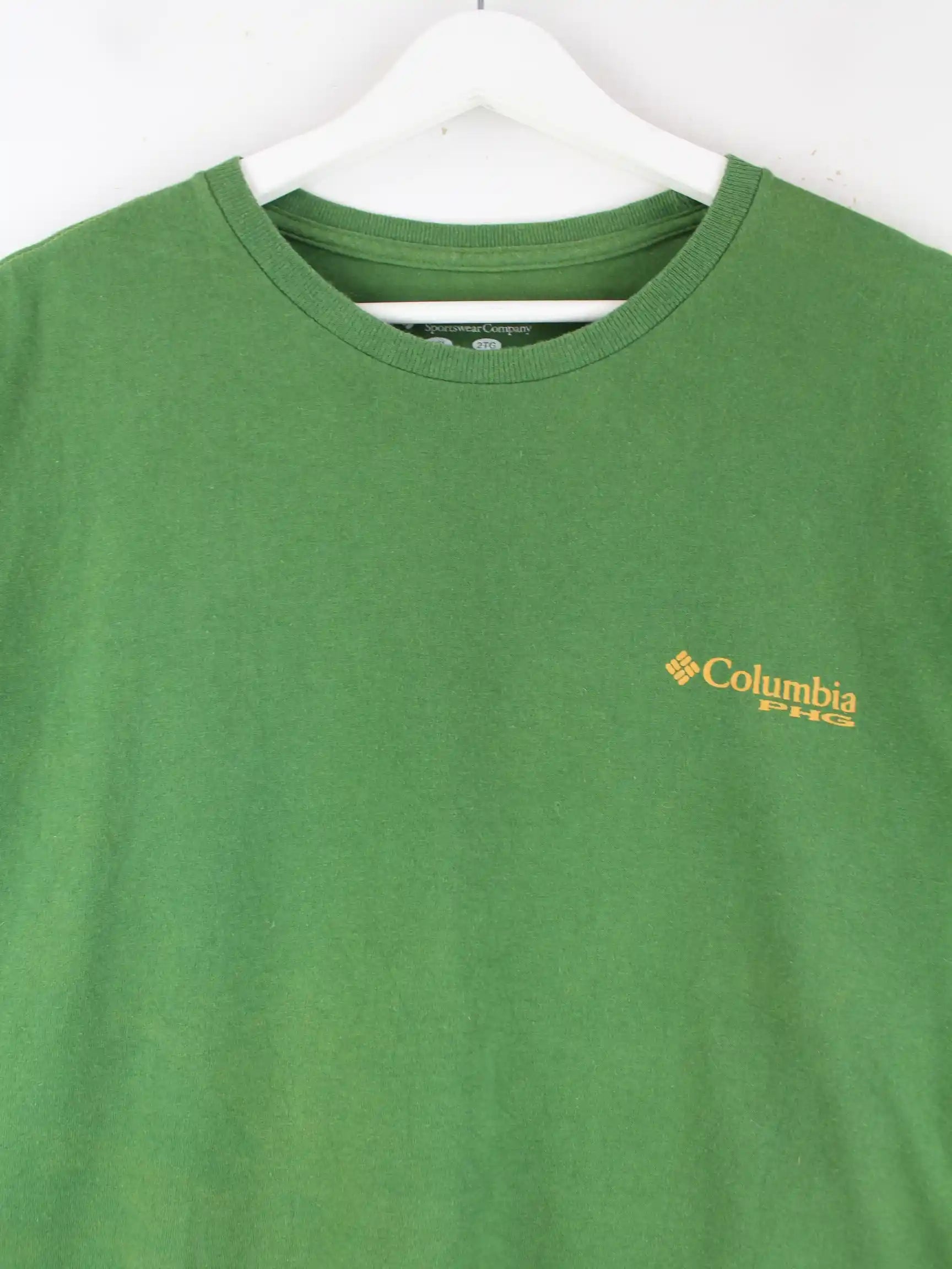 Sweatshirt des Labels Columbia in Größe XXL. Es ist aus Baumwolle hergestellt und in Grün vorrätig. Mit tollem PHG Print.