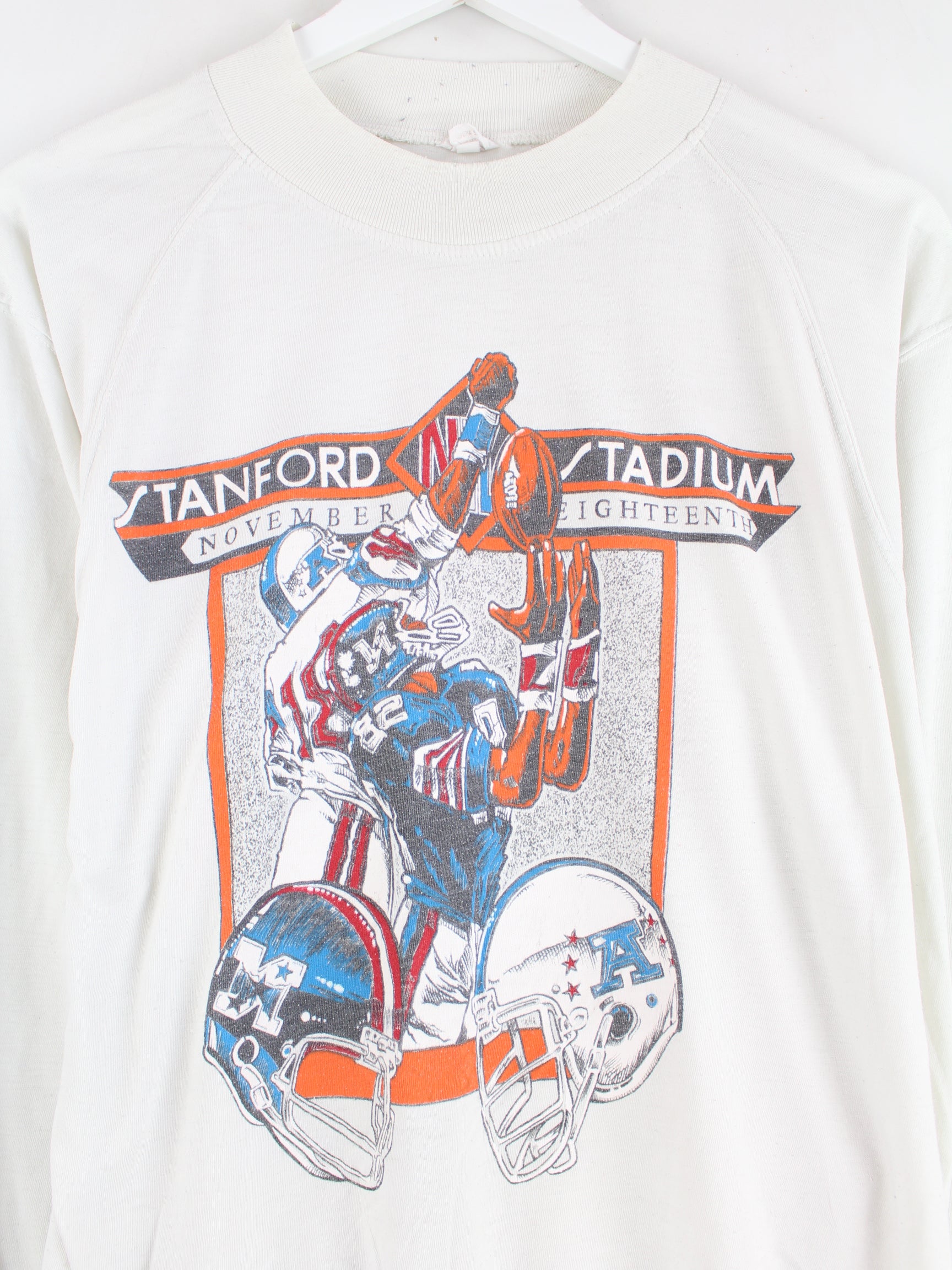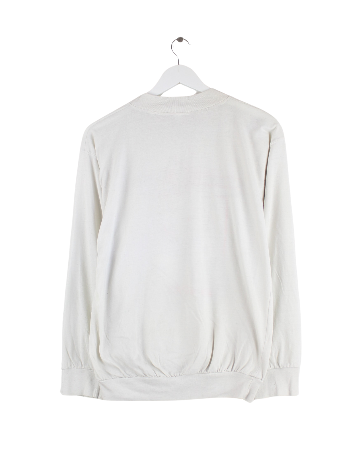 Weißes Vintage Sweatshirt aus den 90'ern in Größe S. Es ist aus Baumwolle gemacht. Den Zustand würden wir als 'In Ordnung' bezeichnen (vergl. Bilder).