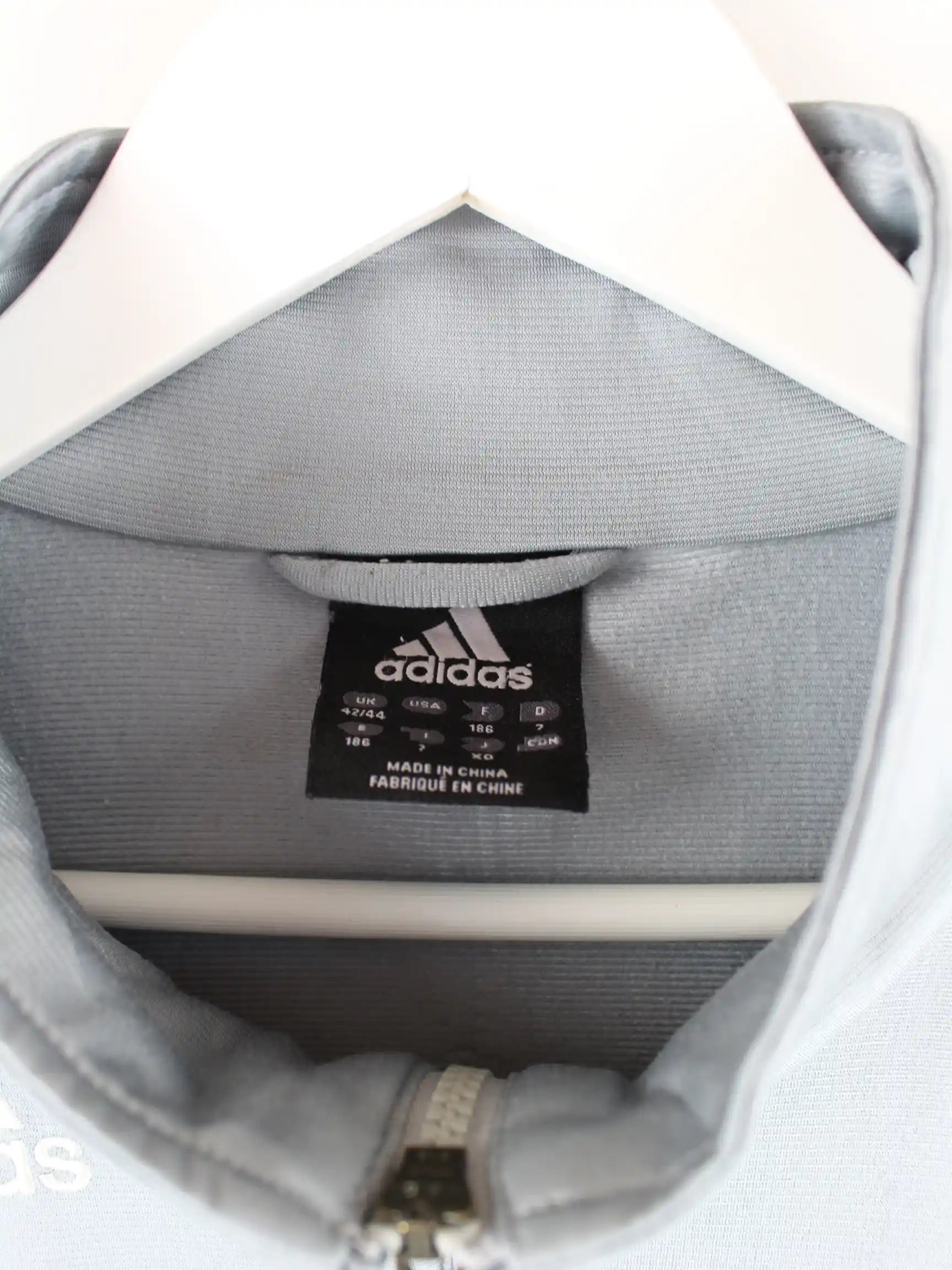 Trainingsjacke des Labels Adidas in Größe XXL. Sie ist aus Synthetik produziert und in Grau bei uns vorrätig.