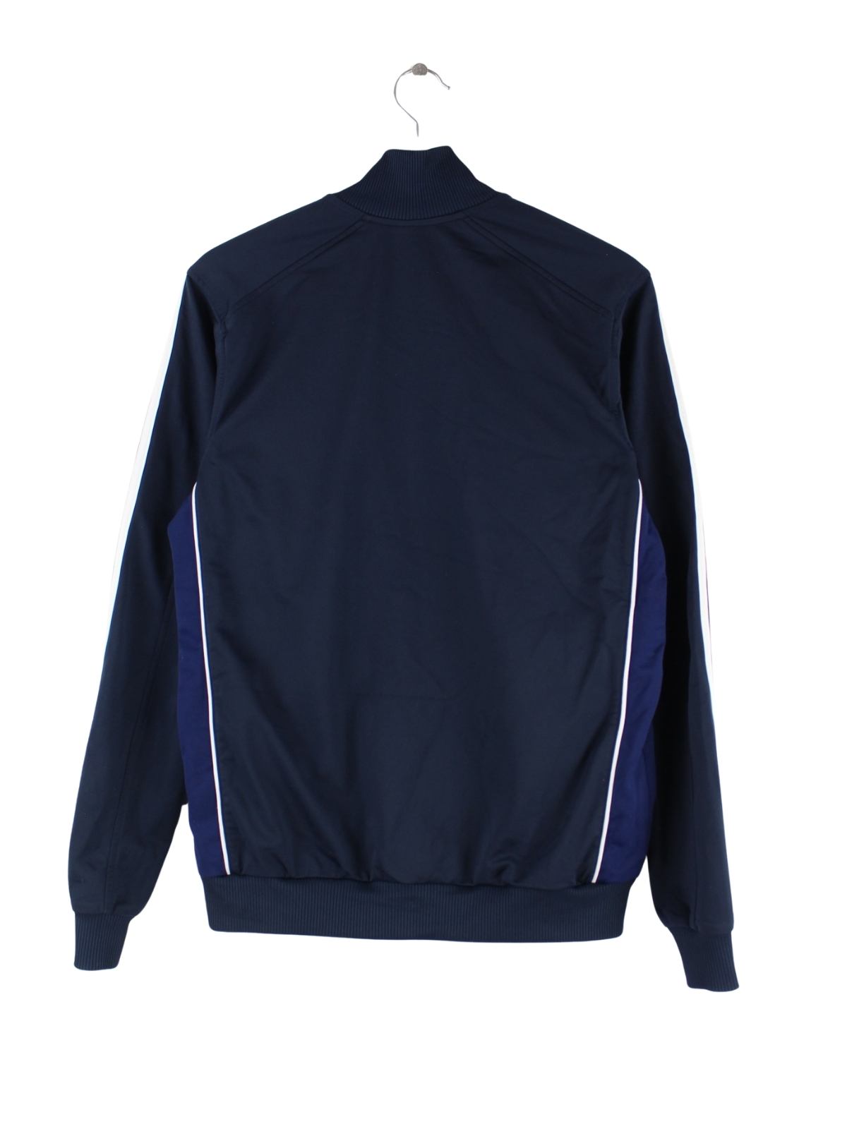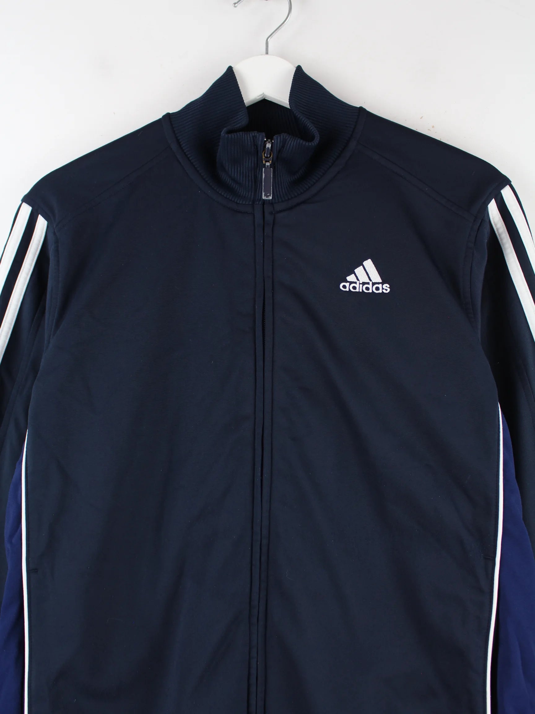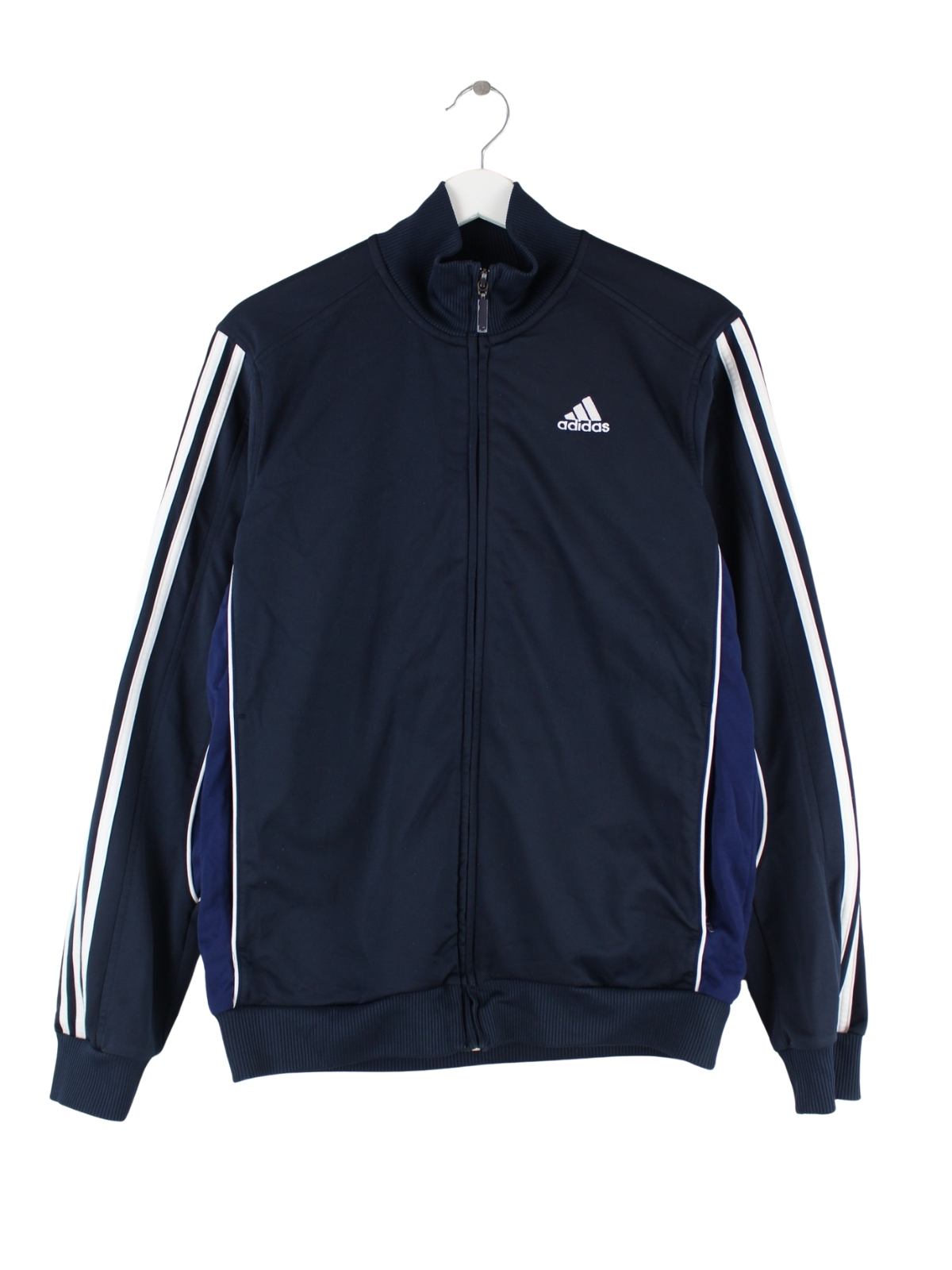 Blaue Trainingsjacke der Brand Adidas in Größe M. Sie ist aus Synthetik produziert und in sehr gutem Zustand im Angebot.