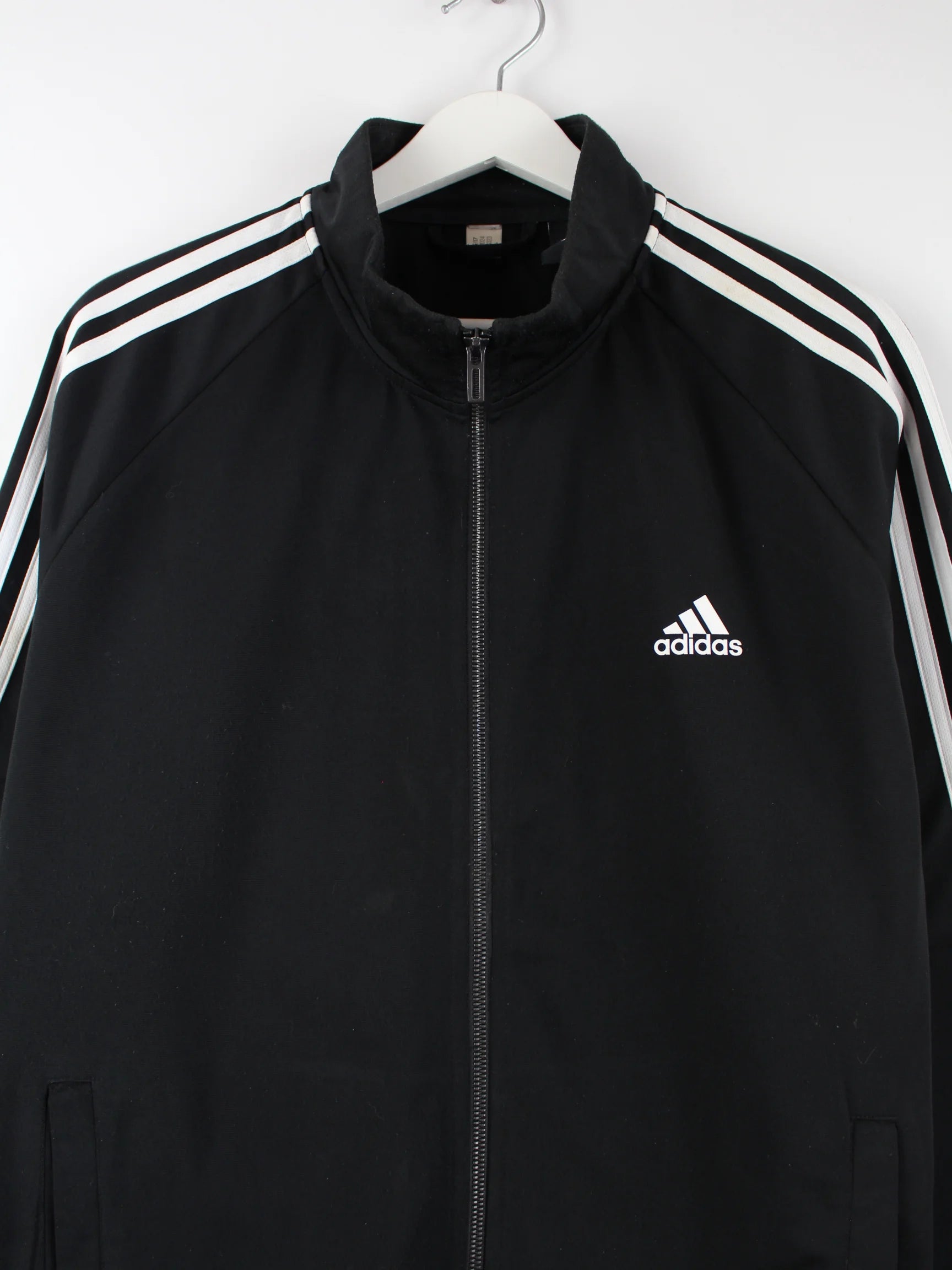 Trainingsjacke vom Brand Adidas in Größe XL. Sie ist aus Synthetik hergestellt und in Schwarz auf Lager.