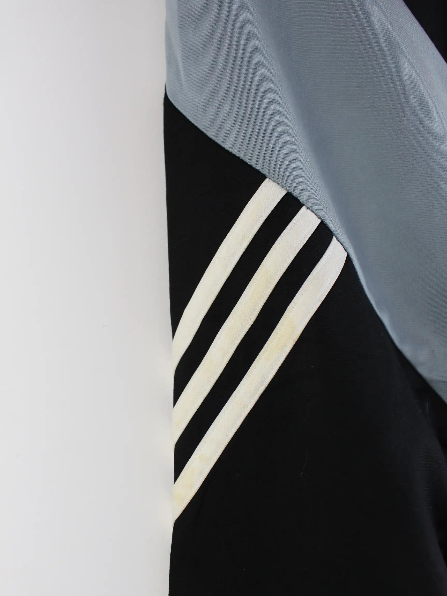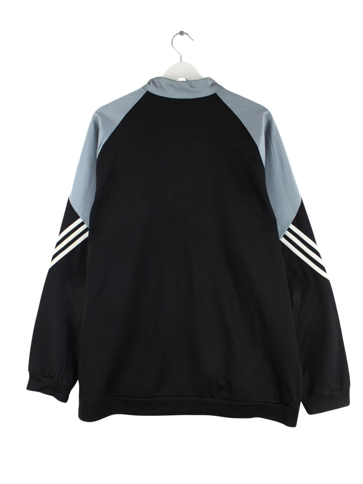 Schwarze Trainingsjacke der Marke Adidas in Größe XXL. Sie ist aus Synthetik angefertigt. Den Zustand würden wir als 'In Ordnung' bezeichnen (vergl. Bilder).