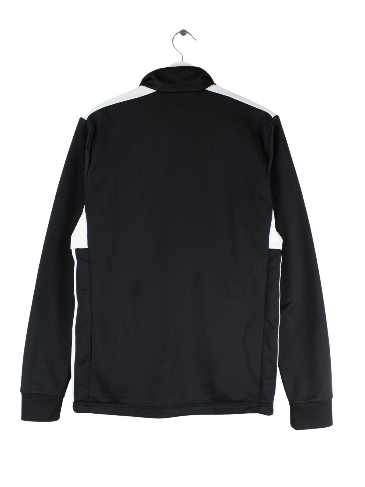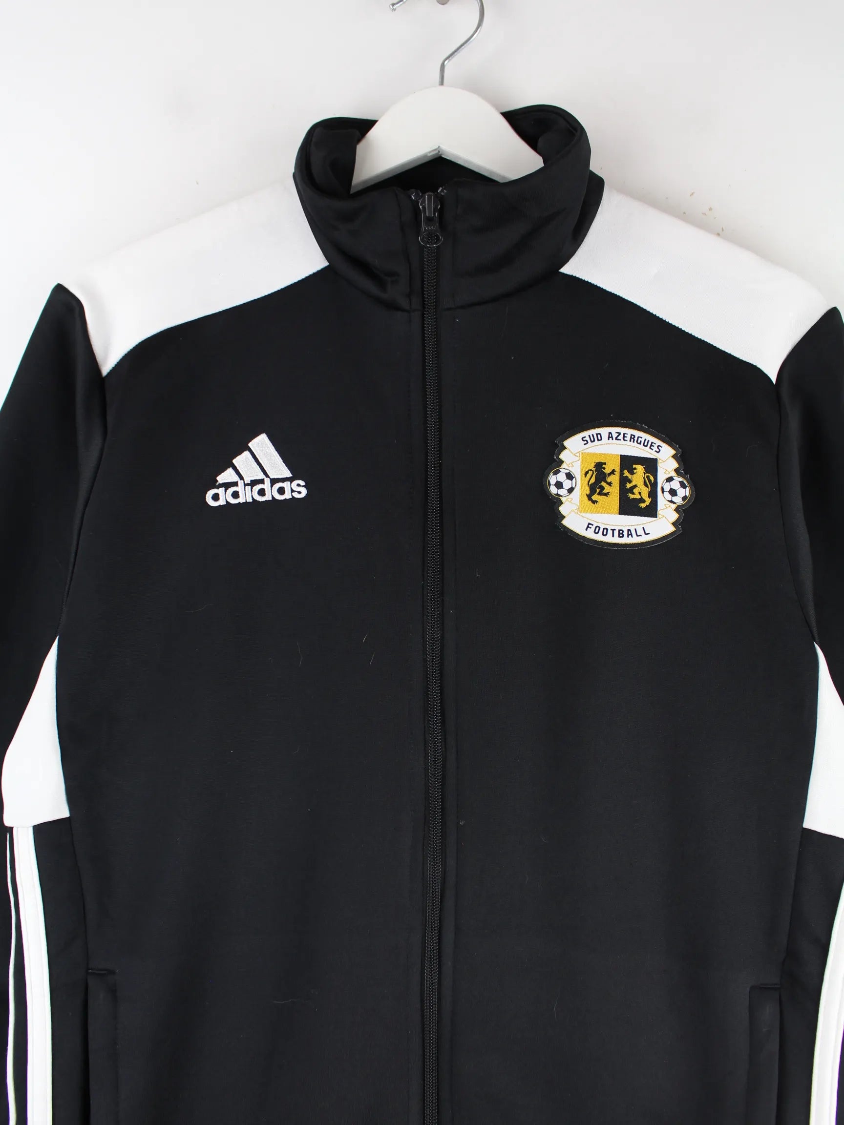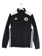 Trainingsjacke vom Brand Adidas mit gestickten Motiven in Größe S. Sie ist aus Synthetik produziert und in Schwarz lieferbar.