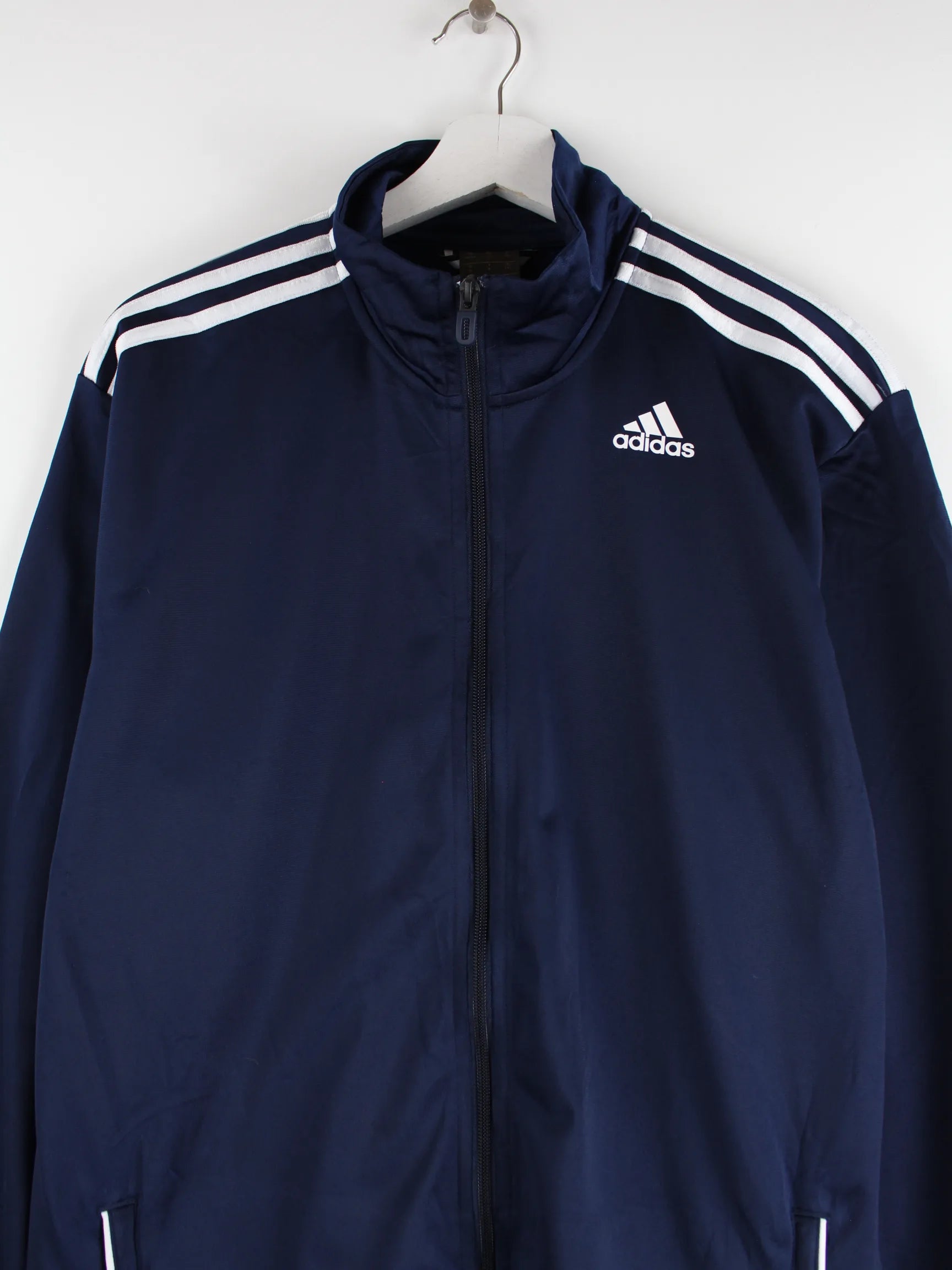Blaue Trainingsjacke der Brand Adidas in Größe XXL. Sie ist aus Synthetik produziert und in gutem Zustand zu bekommen.