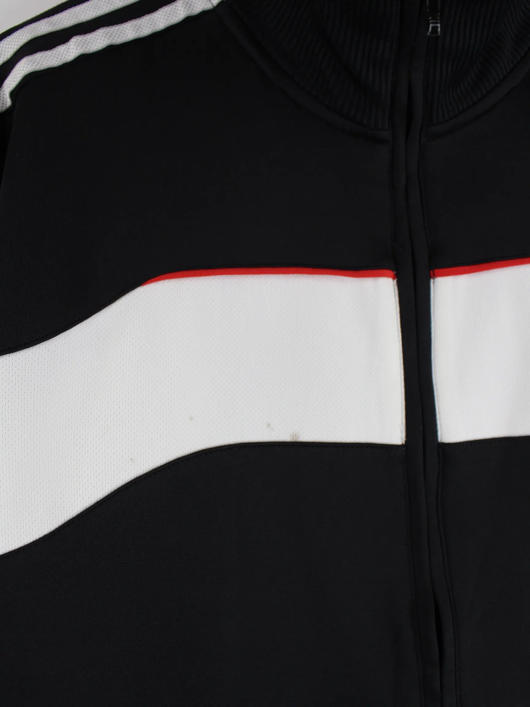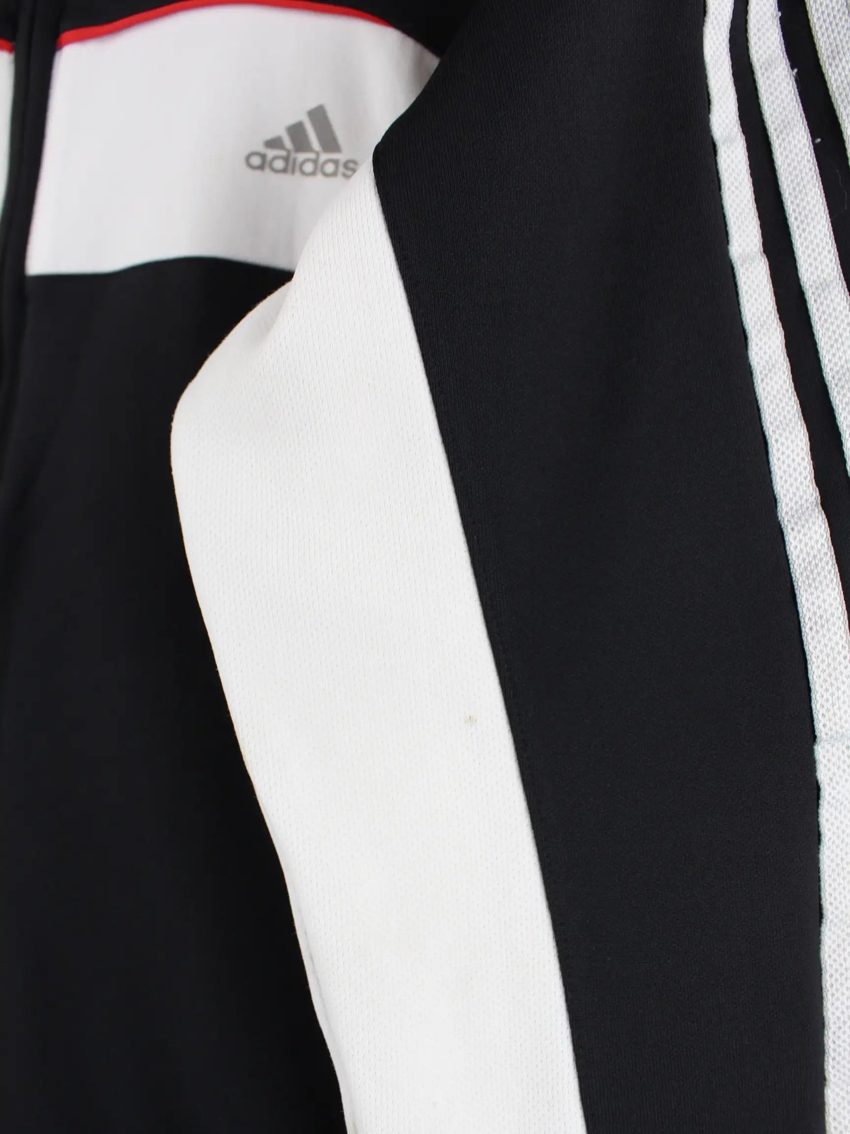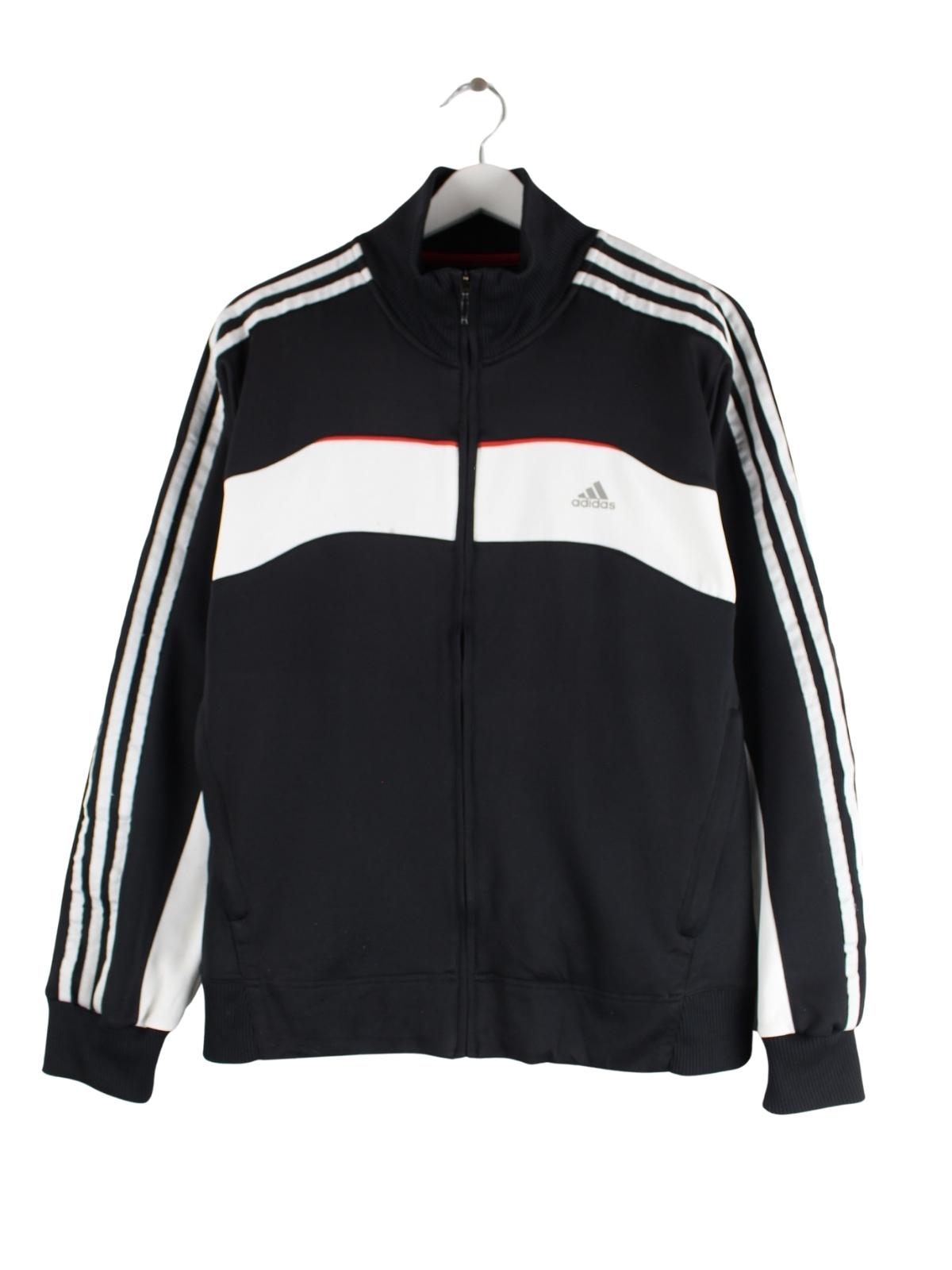 Schwarze Trainingsjacke von Adidas in Größe S. Sie ist aus Synthetik . Den Zustand würden wir als 'In Ordnung' bezeichnen (vergl. Bilder).