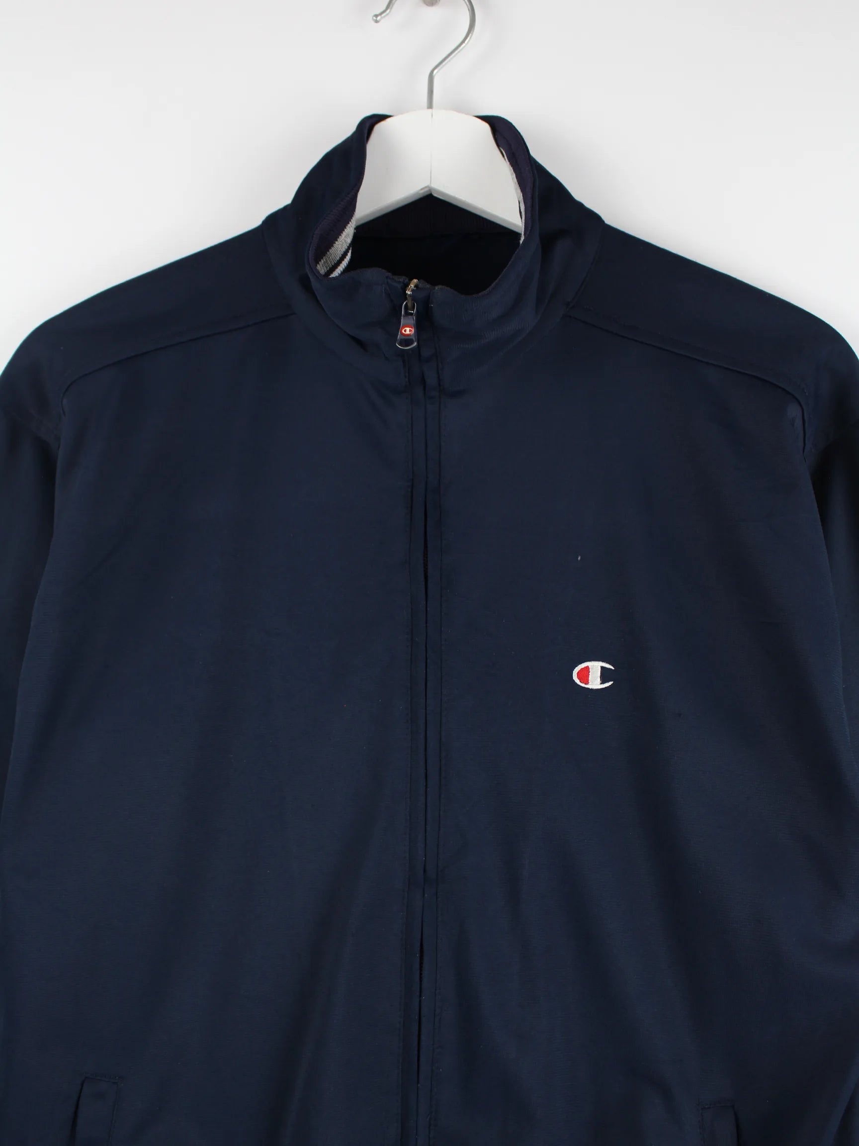 Trainingsjacke der Marke Champion in Größe S. Sie ist aus Synthetik angefertigt und in Blau zu bekommen.