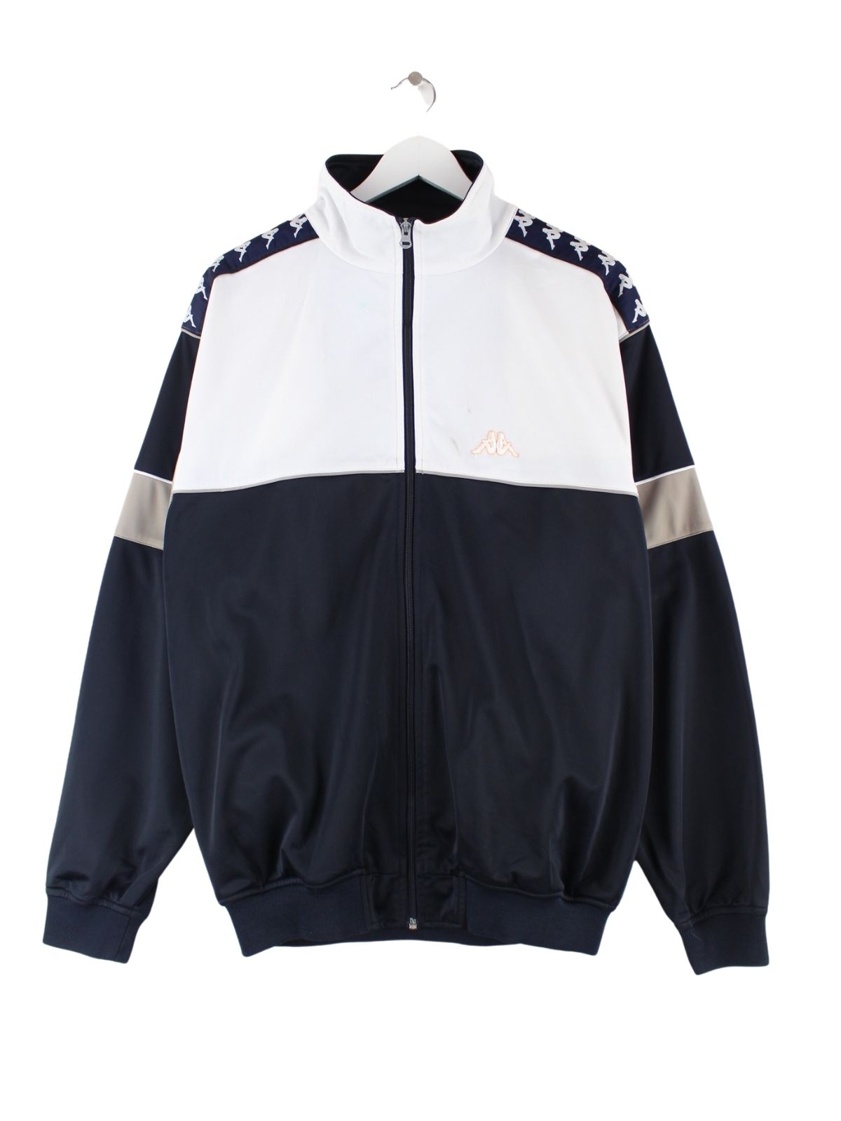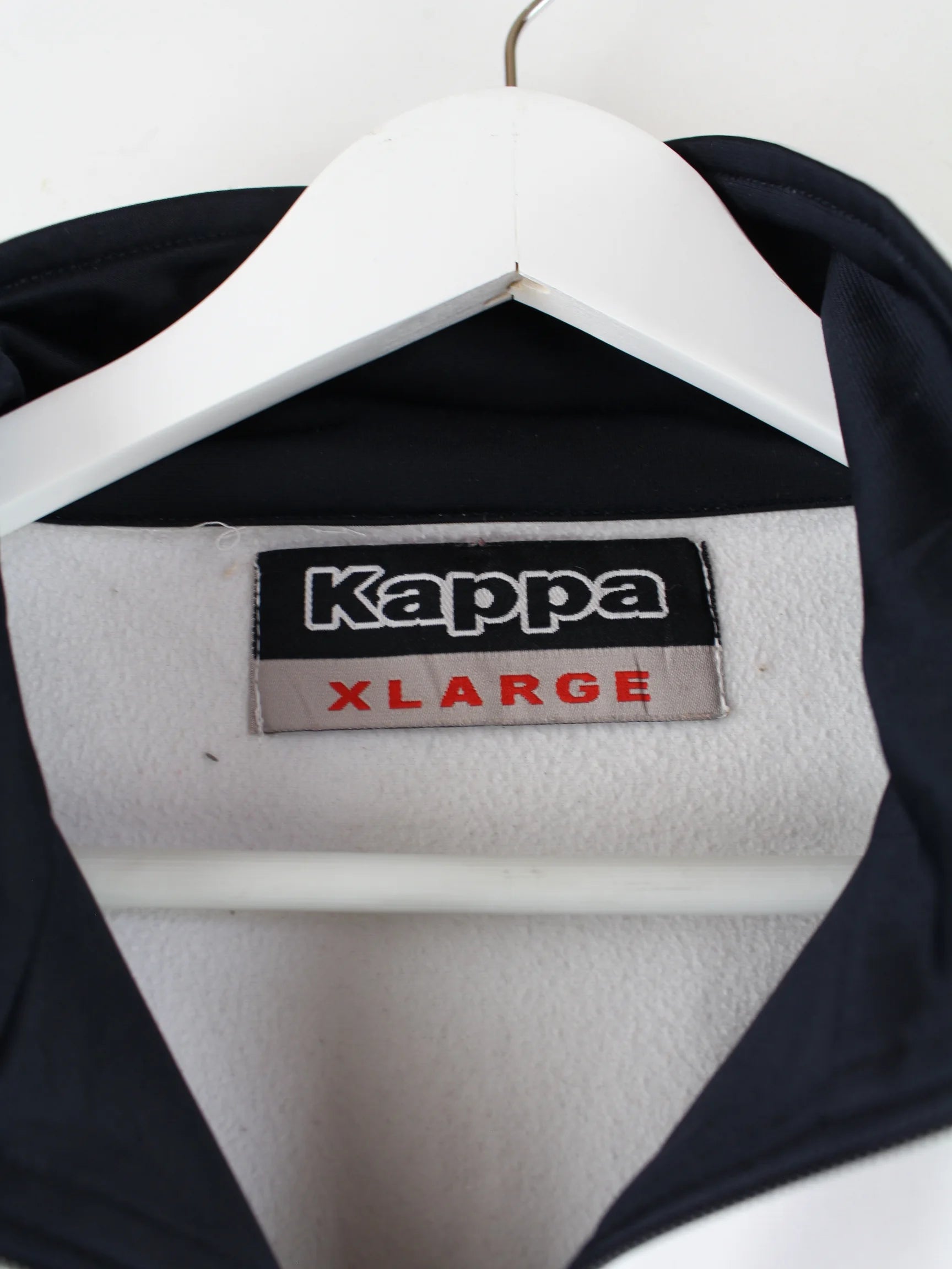 Schwarze Trainingsjacke von Kappa in Größe XL. Sie ist aus Synthetik angefertigt. Den Zustand würden wir als 'In Ordnung' bezeichnen (vergl. Bilder).