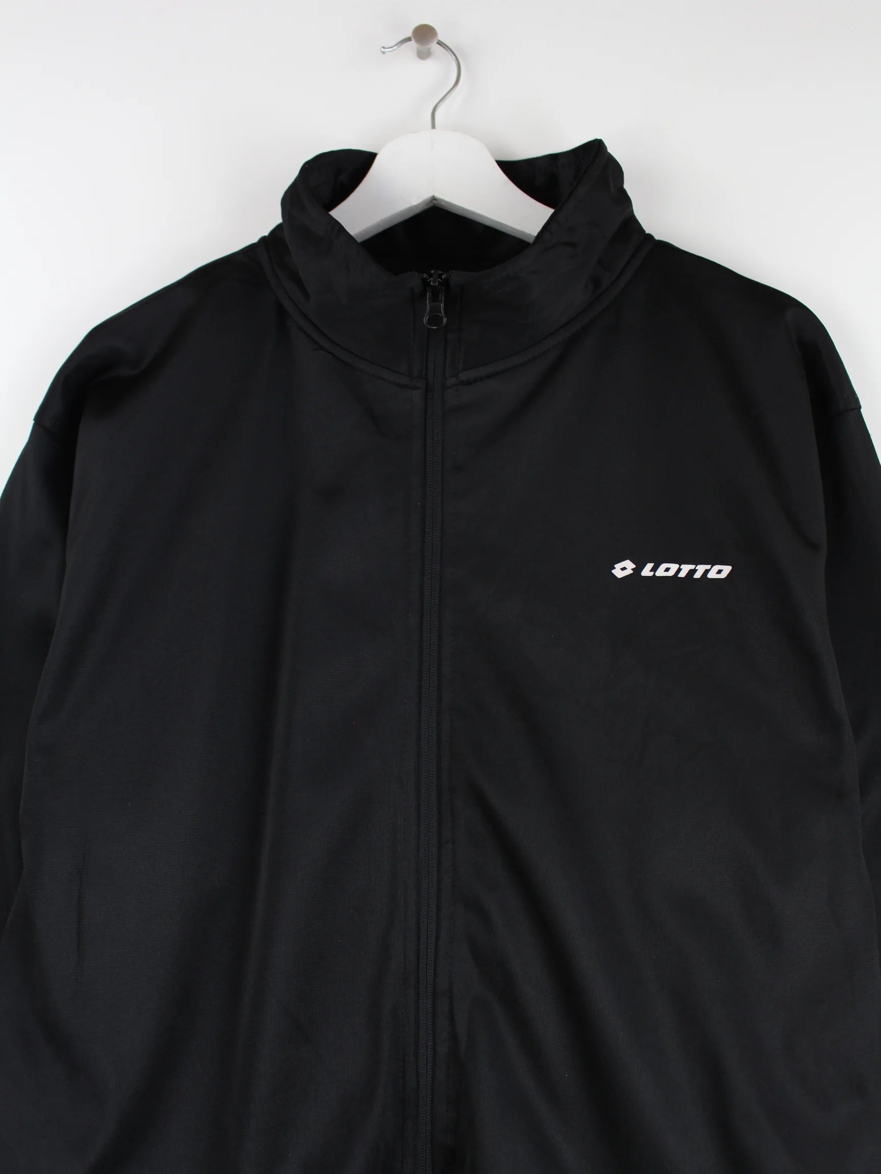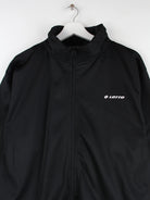 Schwarze Trainingsjacke vom Label Lotto in Größe L. Sie ist aus Synthetik gemacht und in sehr gutem Zustand bei uns vorrätig.