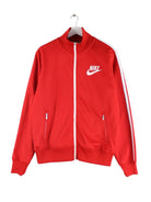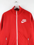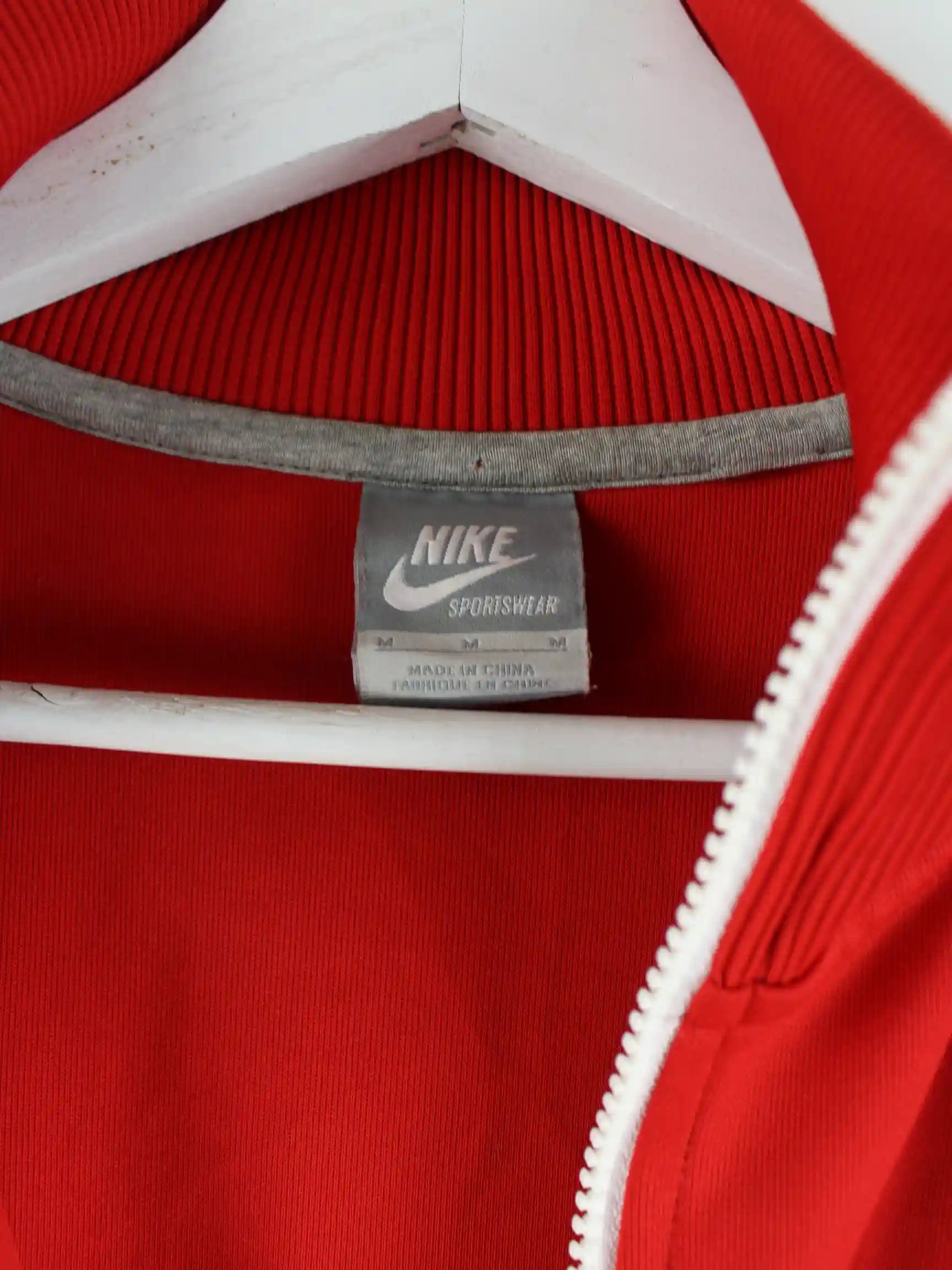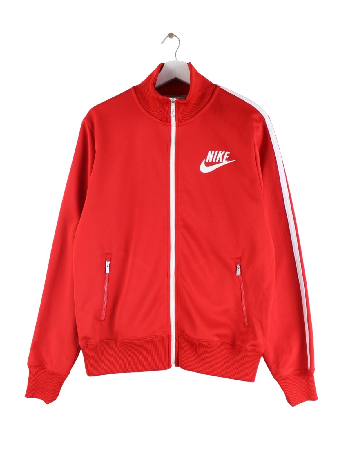 Rote Trainingsjacke der Brand Nike in Größe M. Sie ist aus Synthetik produziert und in sehr gutem Zustand bei uns zu bekommen. Mit schickem Logo Print.