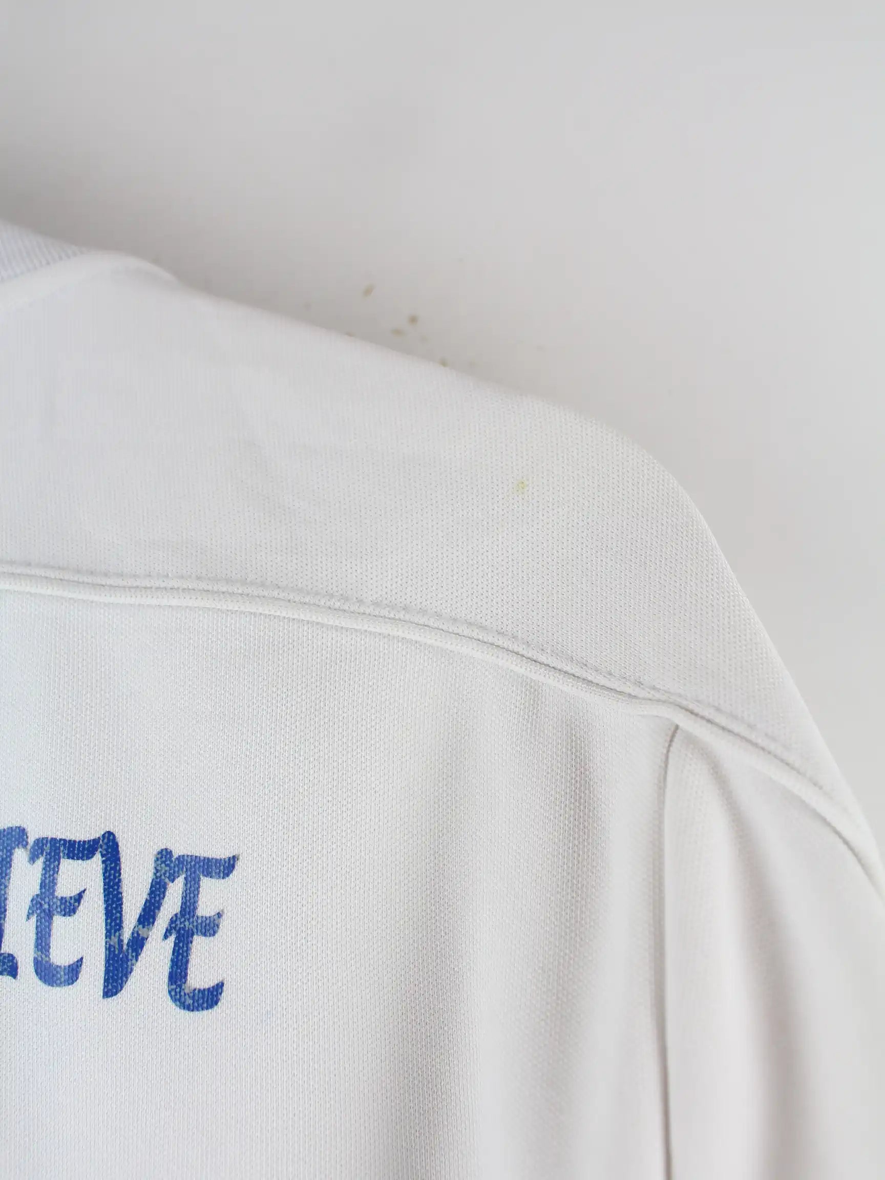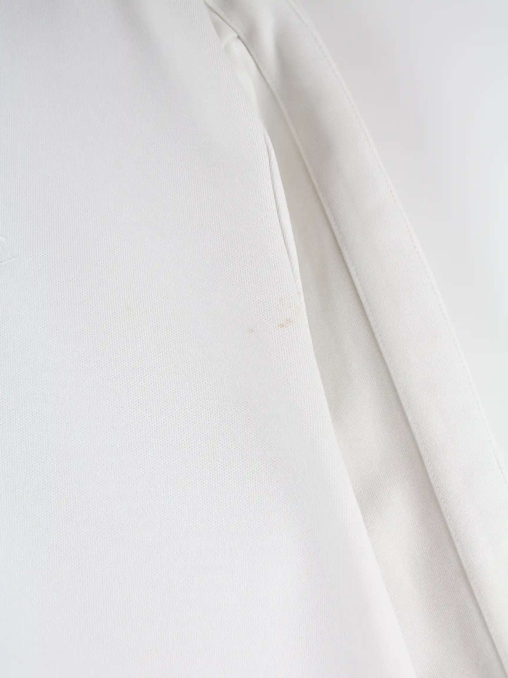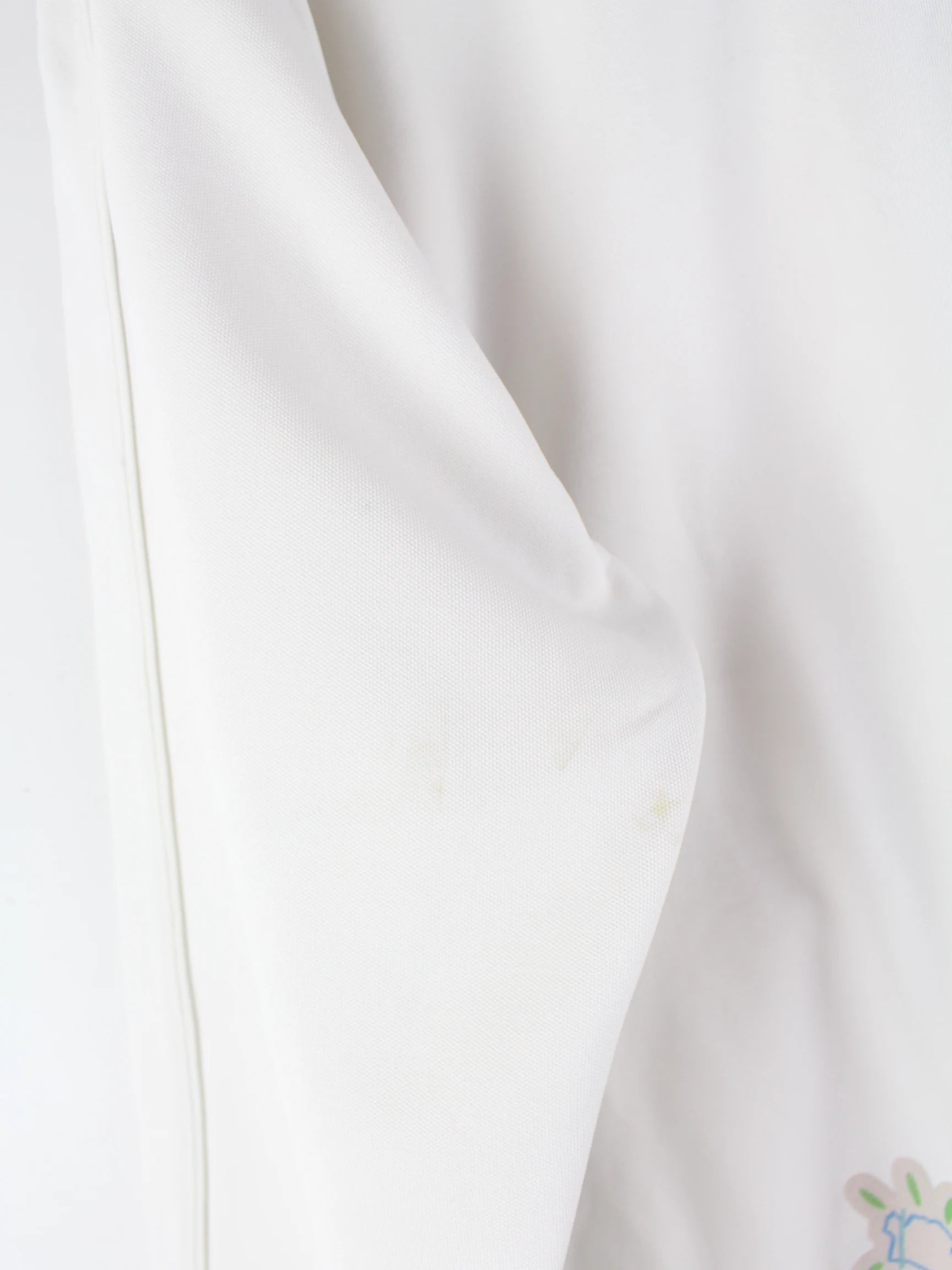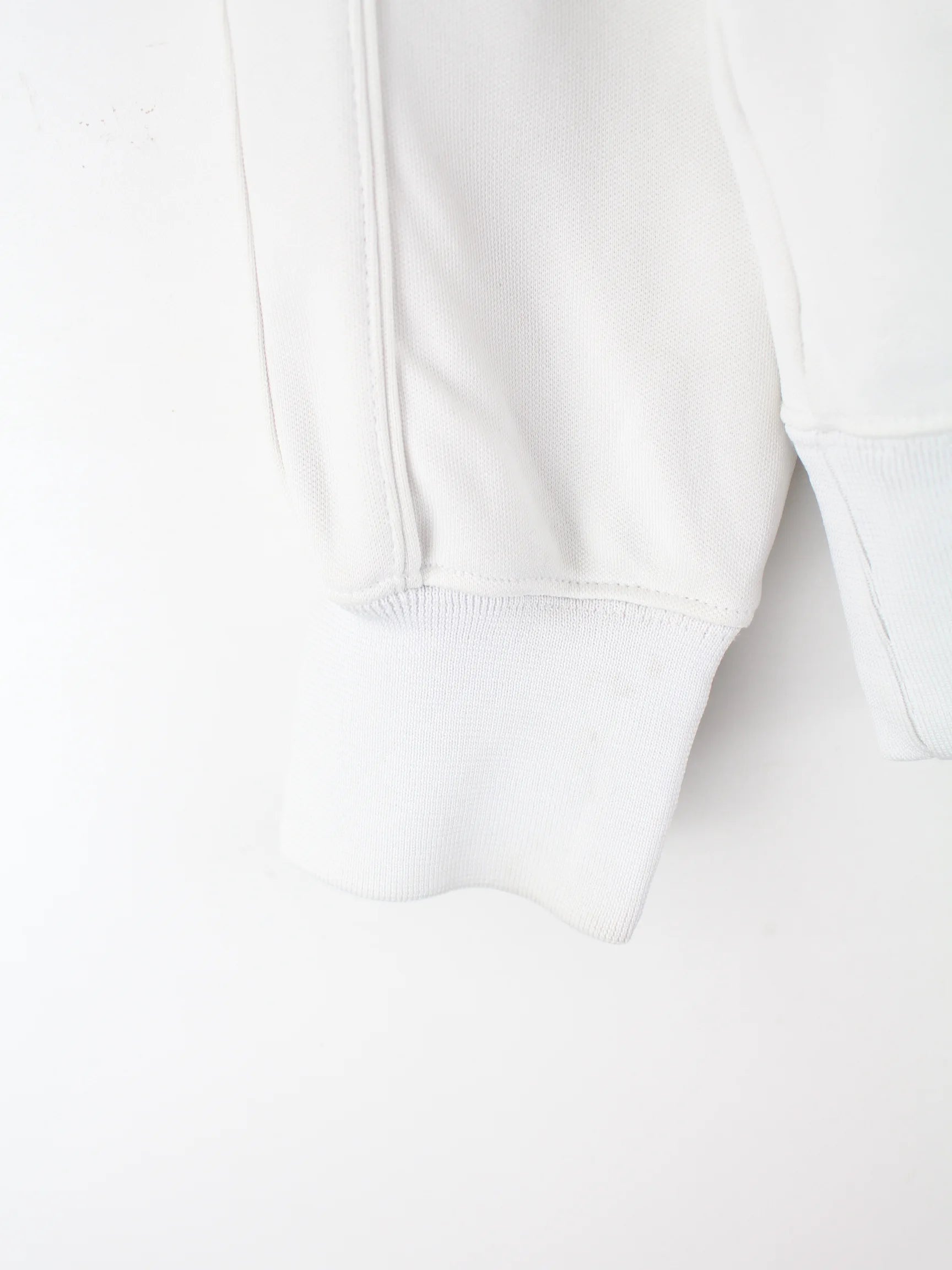 Trainingsjacke der Marke Nike mit gestickten Motiven in Größe L. Sie ist aus Synthetik gefertigt und in Weiß zu haben.