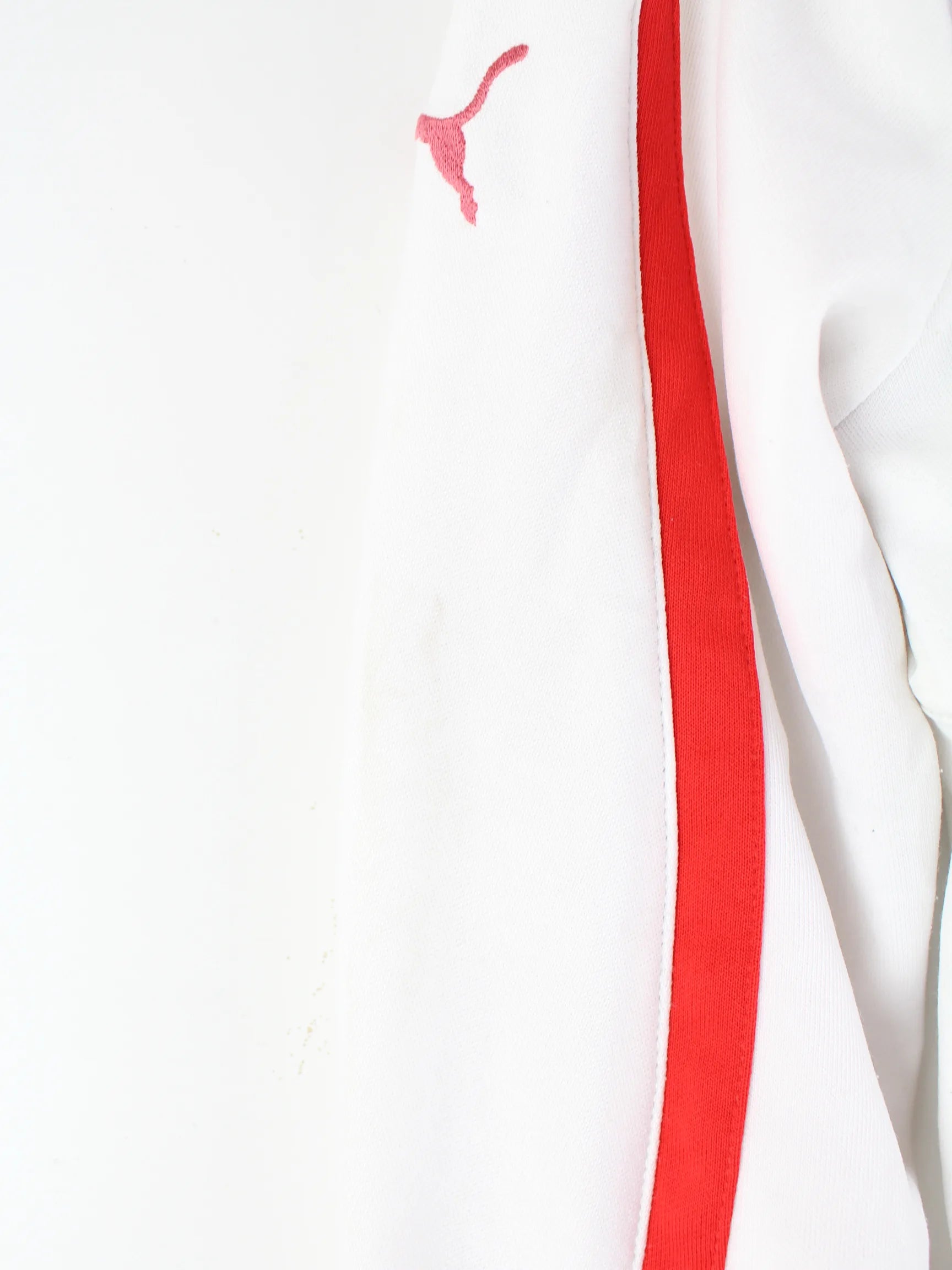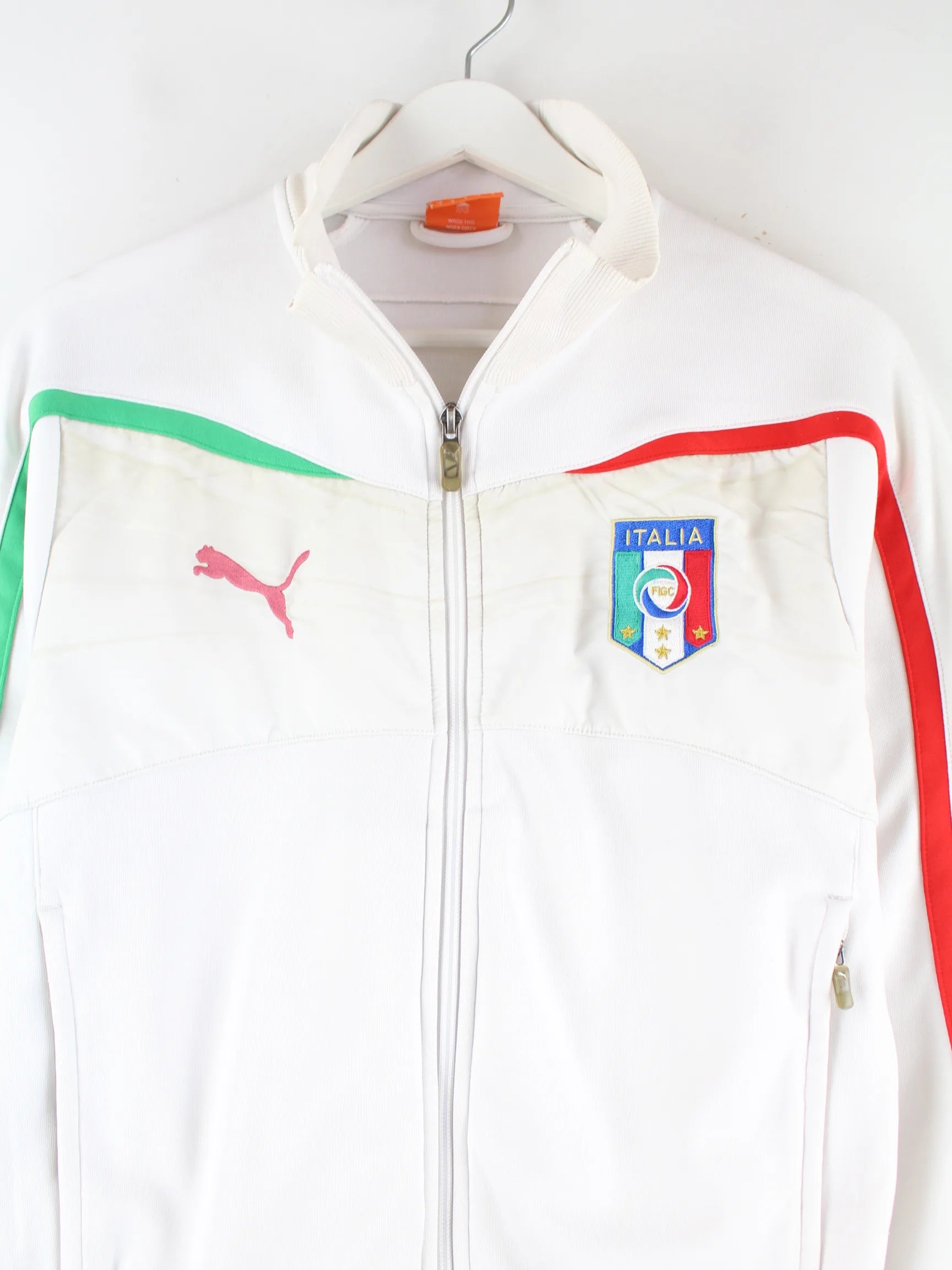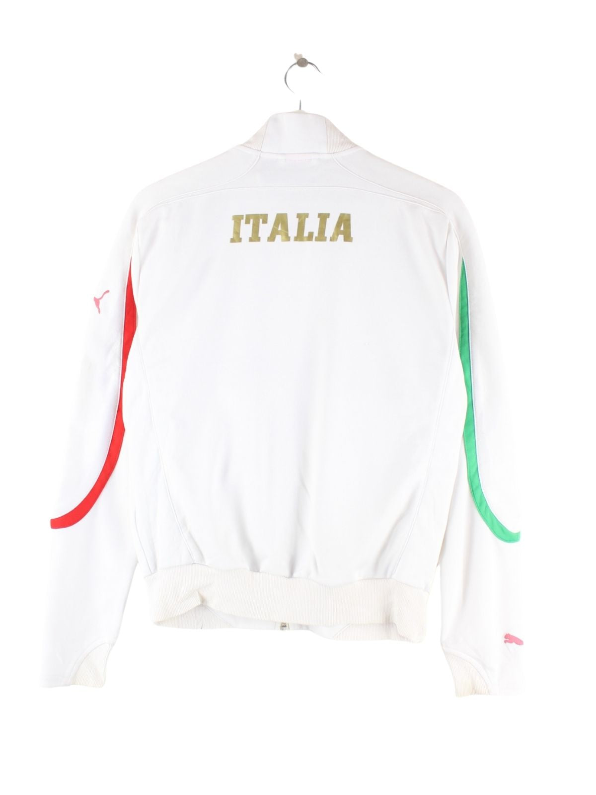 Trainingsjacke vom Brand Puma in Größe S. Sie ist aus Synthetik gefertigt und in Weiß im Angebot. Mit schönem Italia Print.