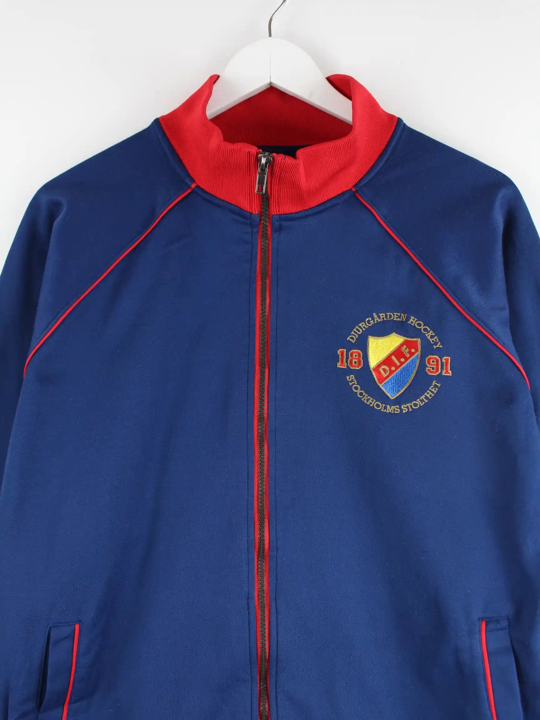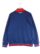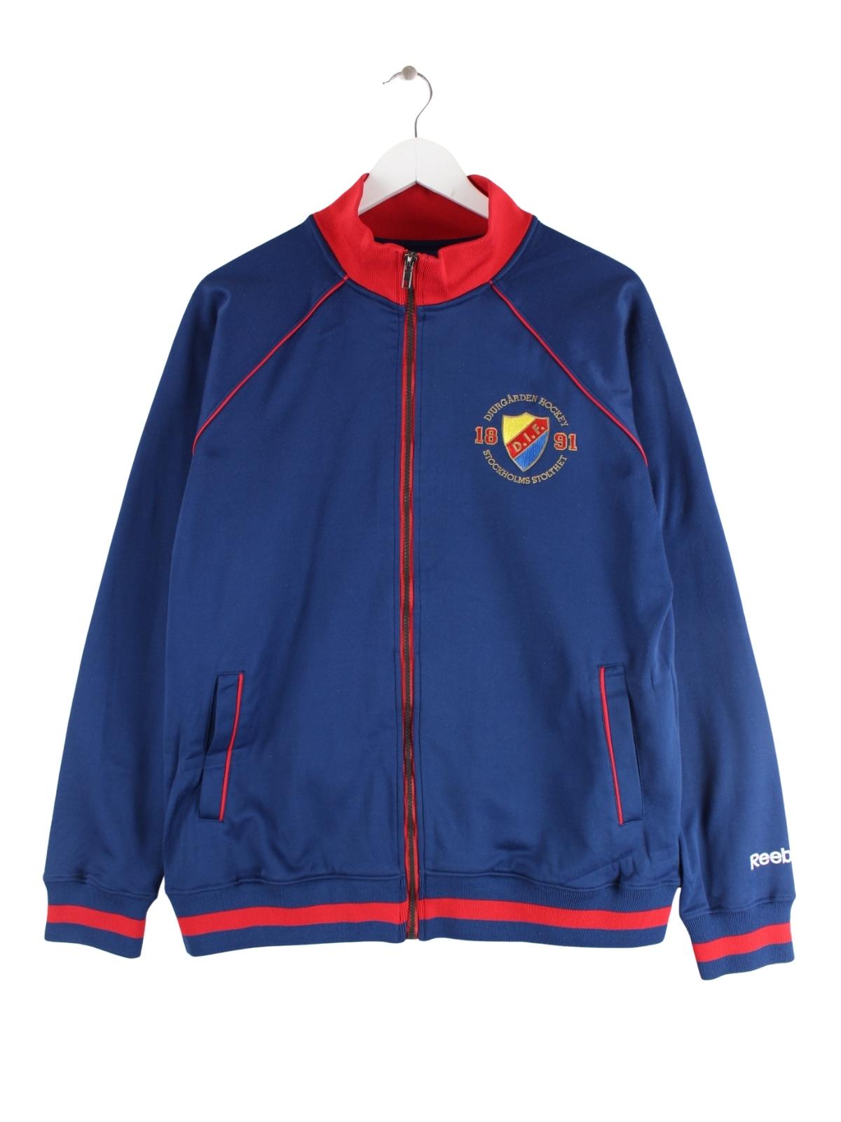 Blaue Trainingsjacke der Marke Reebok in Größe M. Sie ist aus Synthetik angefertigt und in gutem Zustand zu bekommen.