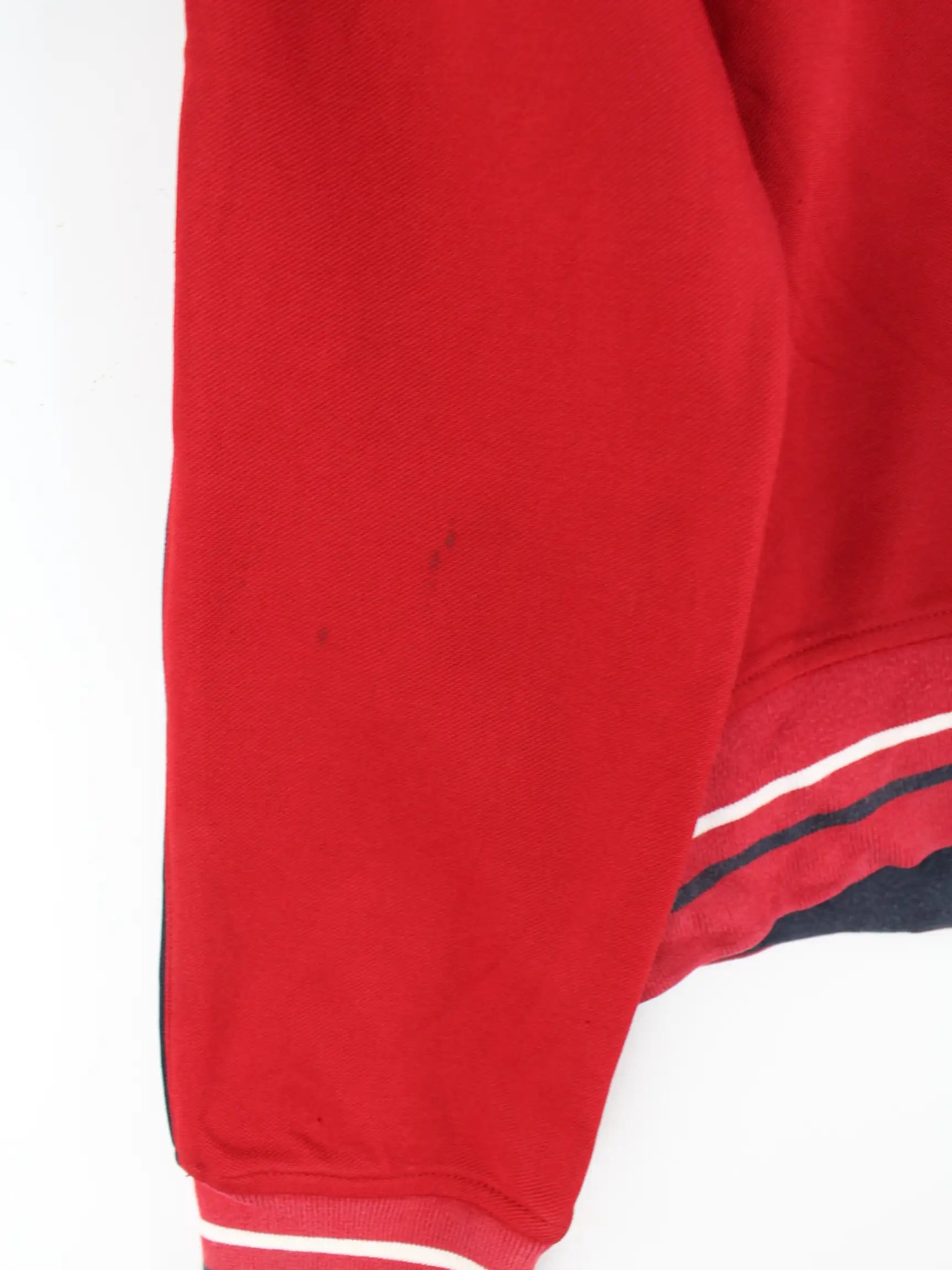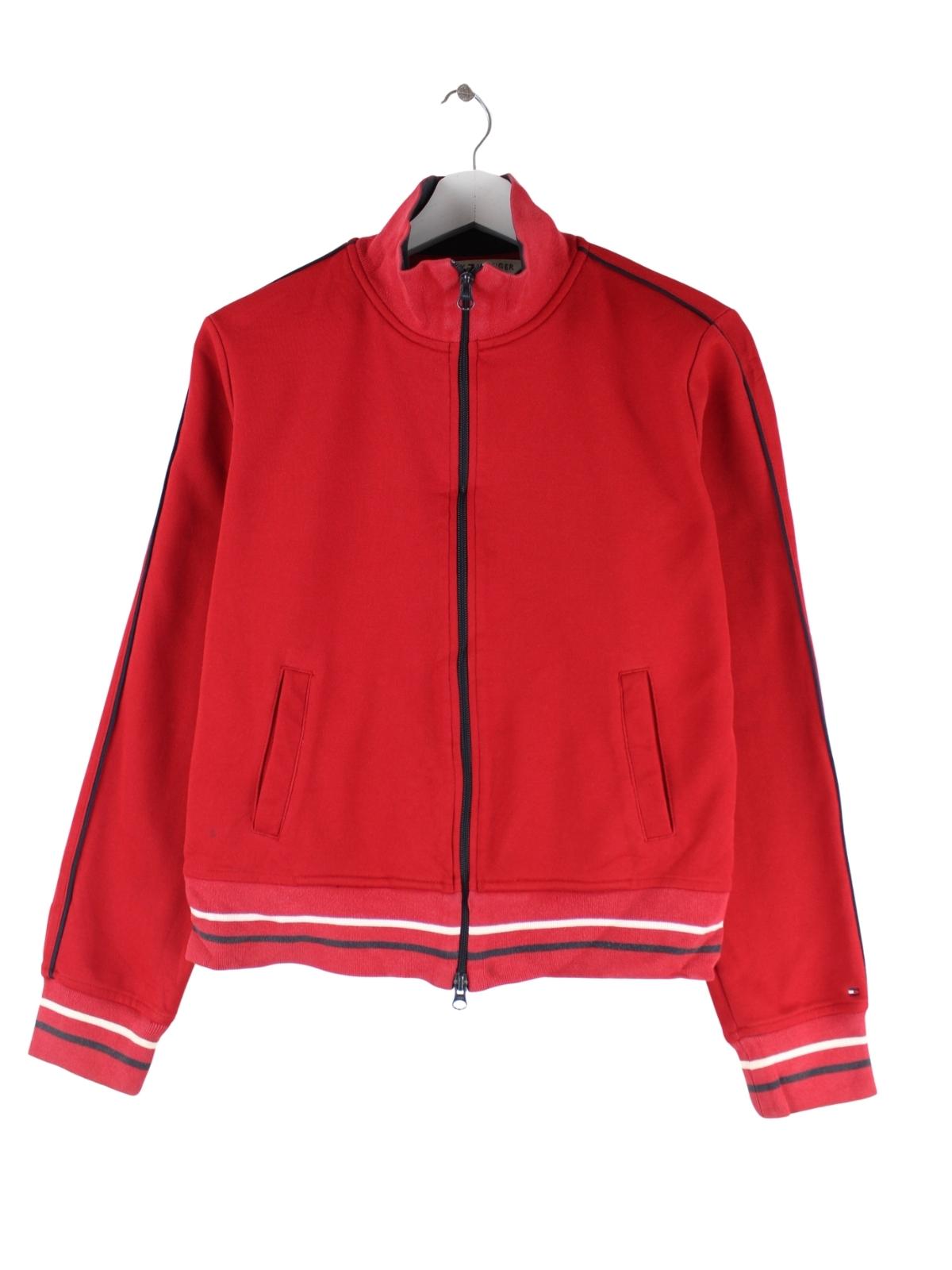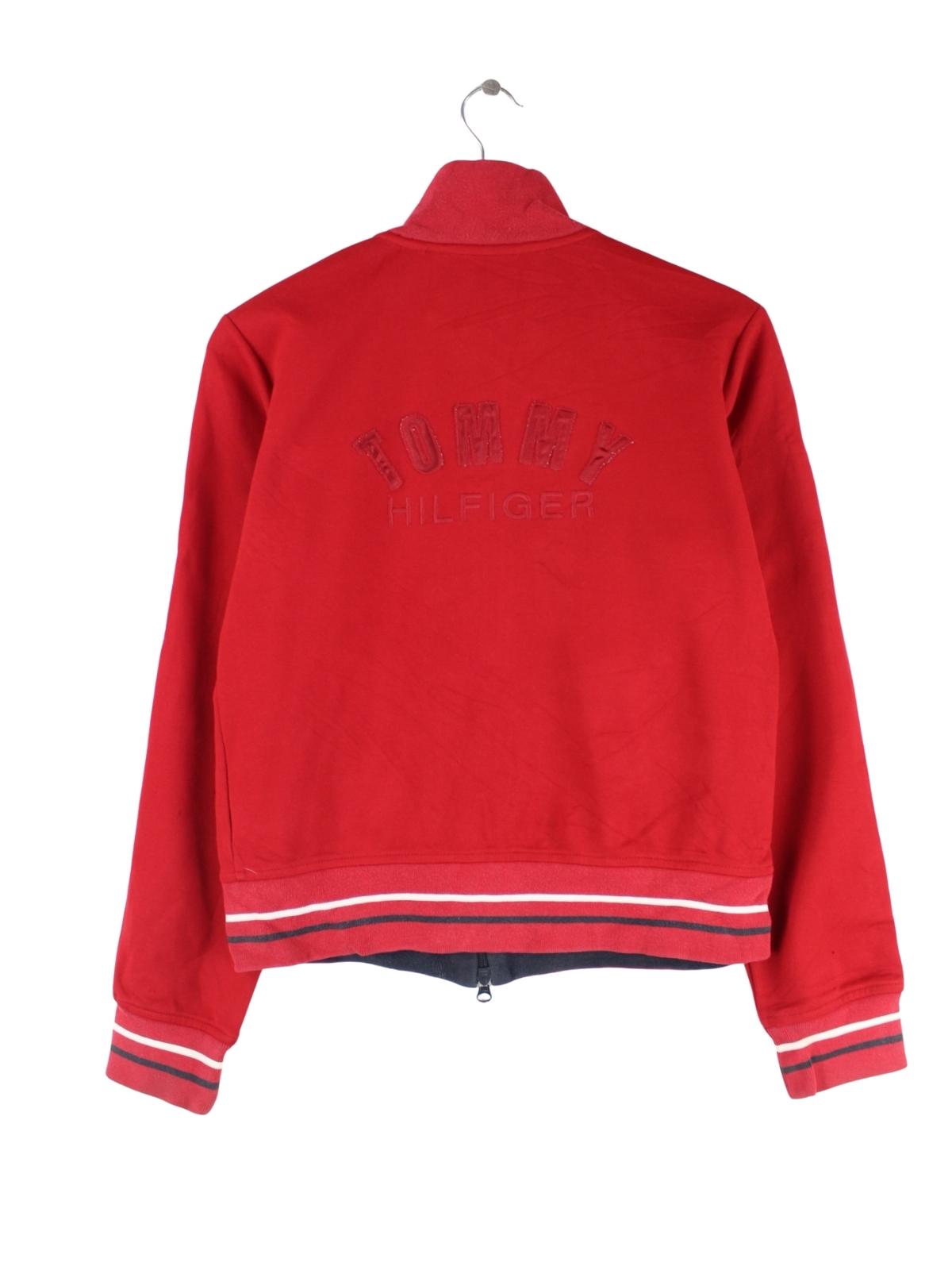 Rote Trainingsjacke mit gesticktem Logo der Brand Tommy Hilfiger in Größe M. Sie ist aus Synthetik angefertigt. Den Zustand würden wir als 'In Ordnung' bezeichnen (vergl. Bilder).